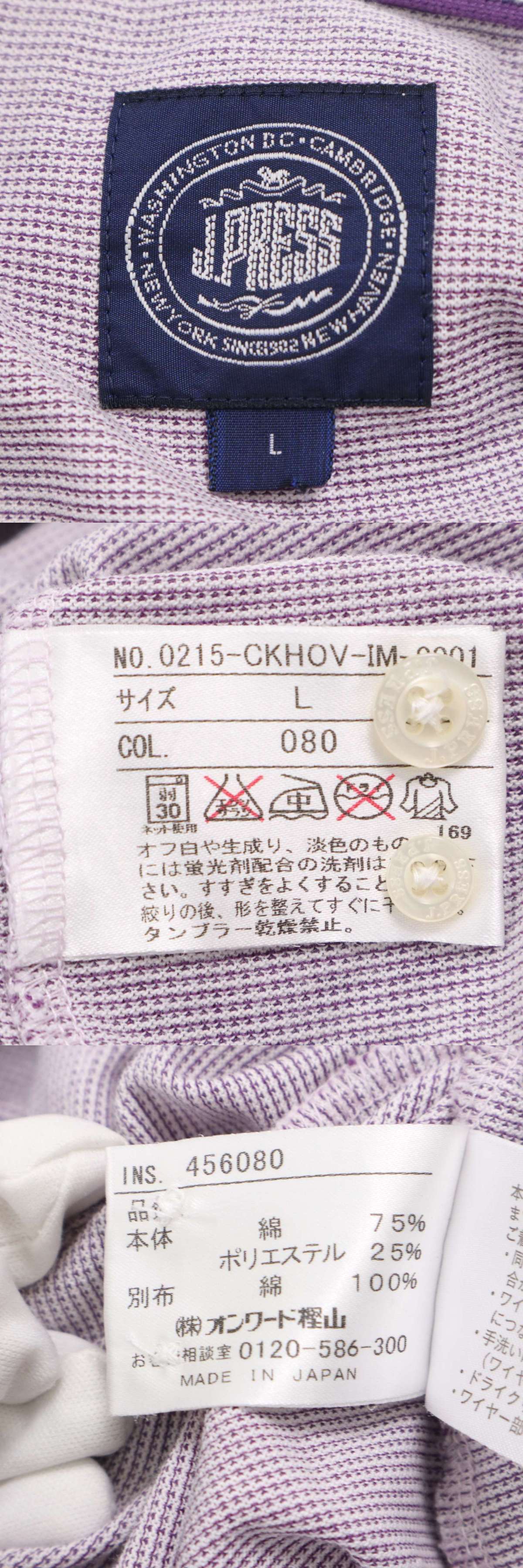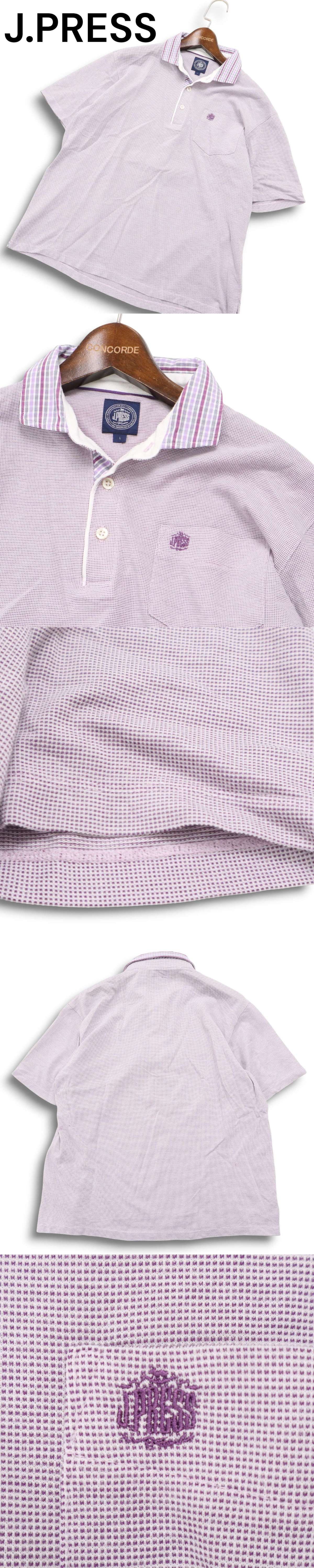 J.PRESS ジェイプレス 春夏 ロゴ刺繍★ 半袖 マイクロチェック ポロシャツ Sz.L メンズ 日本製