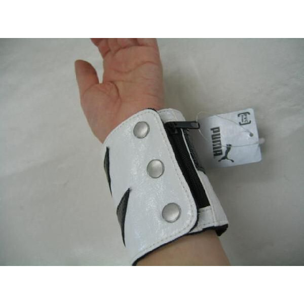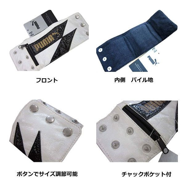 PUMA(プーマ)レディース Antitaste Wristband 合皮リストバンド・ホワイトです。 ■素材 合皮製 ■サイズ 開いた状態で長さ約25.5cm、縦約9cm。 ■特徴 合皮製の鮮やかで可愛いリストバンドです。内側はパイル生地。チャックポケット付き! | ||||||