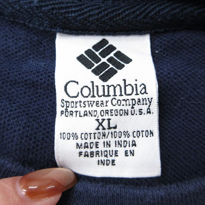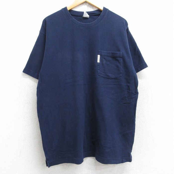 【商品名】 XL★古着 コロンビア 半袖 ビンテージ Tシャツ メンズ 00年代 00s 無地 胸ポケット付き 鹿の子 コットン クルーネック 紺
