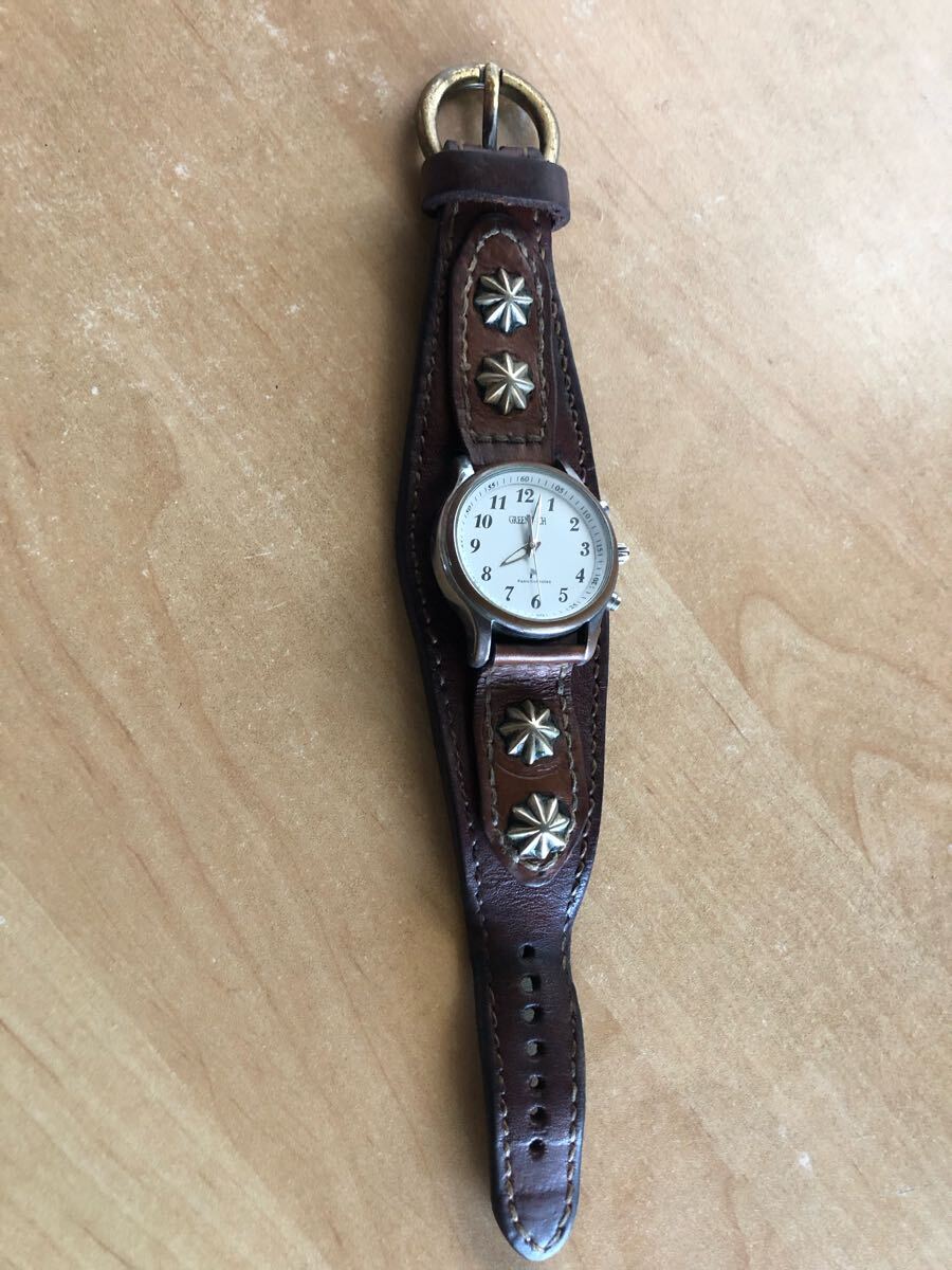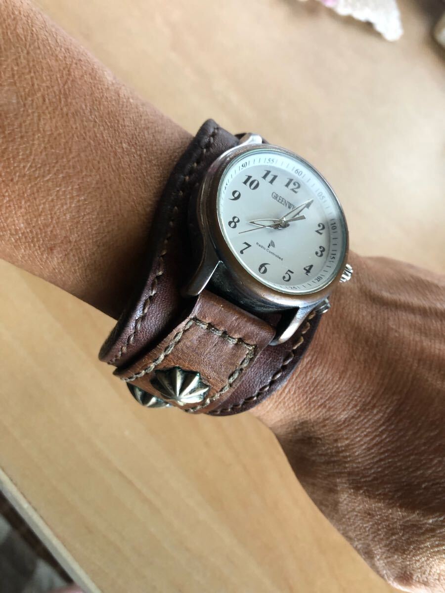 以前レザークラフトショップで制作して頂いたレザーバングルウォッチです