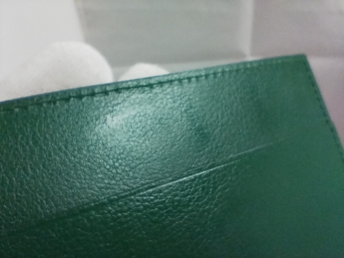 ・パスケース裏側にあるスロットは本来ギャランティカードを入れるスペースです。切れ込み部分からはギャランティカードに記載された番号などが確認できる仕様です。