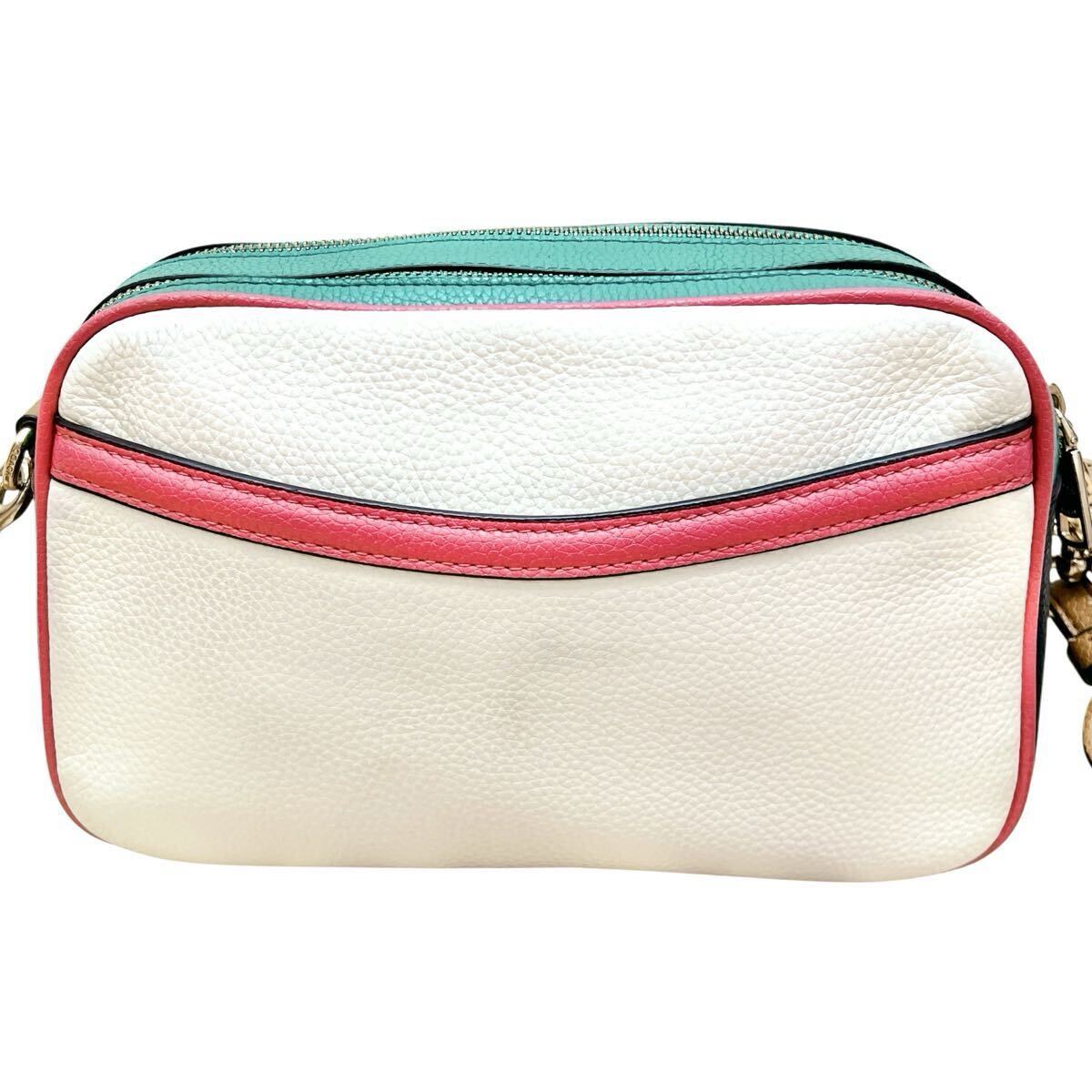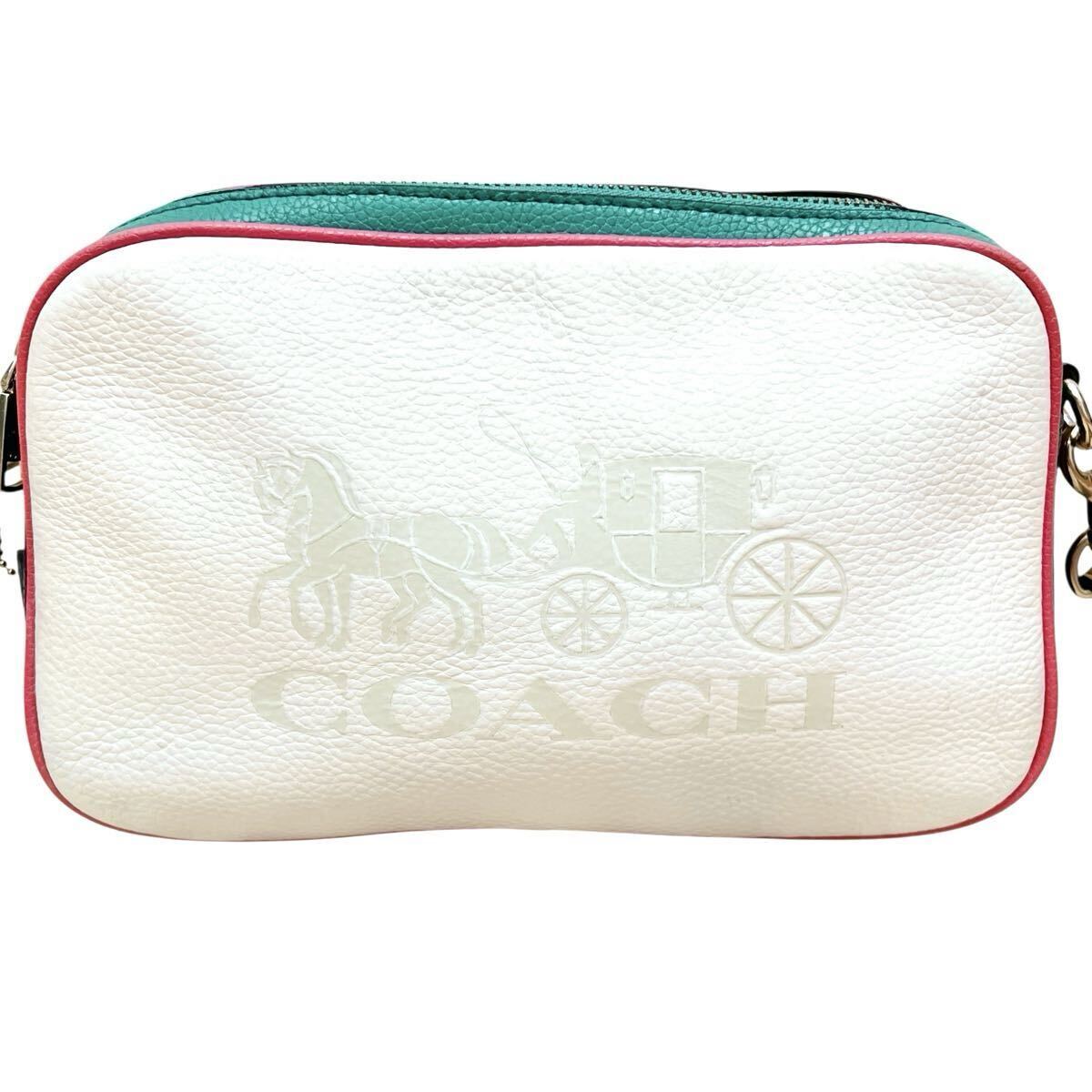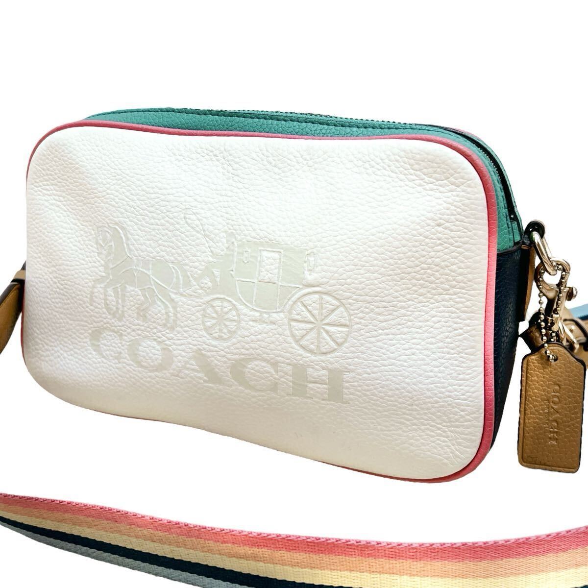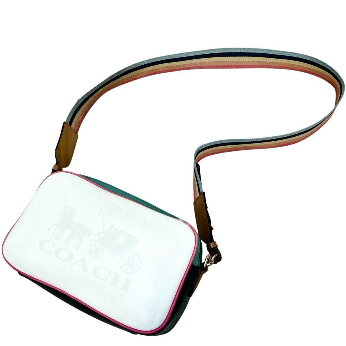 コーチ COACH ショルダーバッグ カメラバッグ 斜め掛け ホースアンドキャリッジ 革 レザー ロゴタグ ホワイト 白 レインボー 虹色 大容量