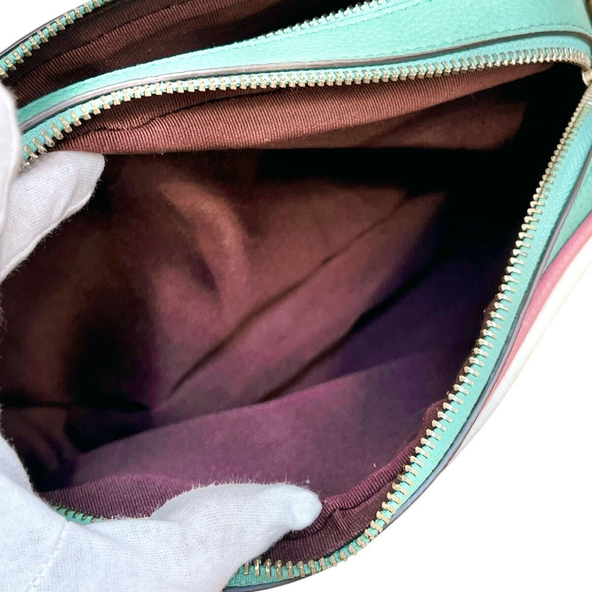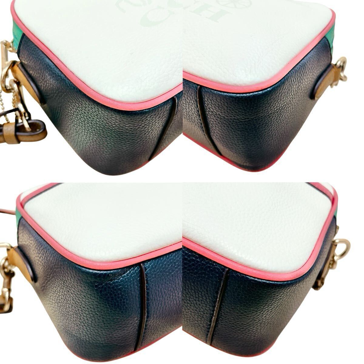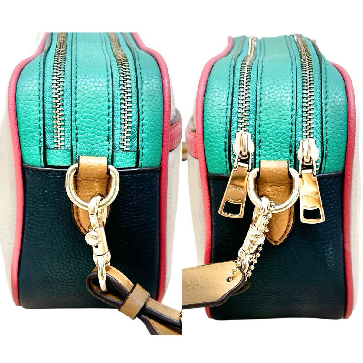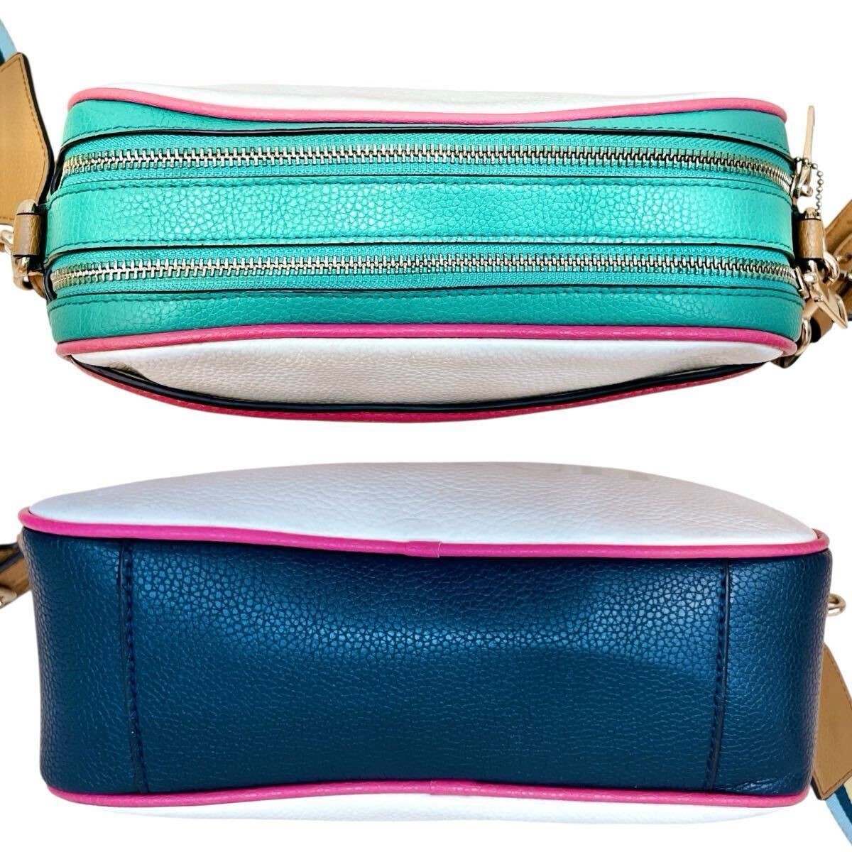 コーチ COACH ショルダーバッグ カメラバッグ 斜め掛け ホースアンドキャリッジ 革 レザー ロゴタグ ホワイト 白 レインボー 虹色 大容量