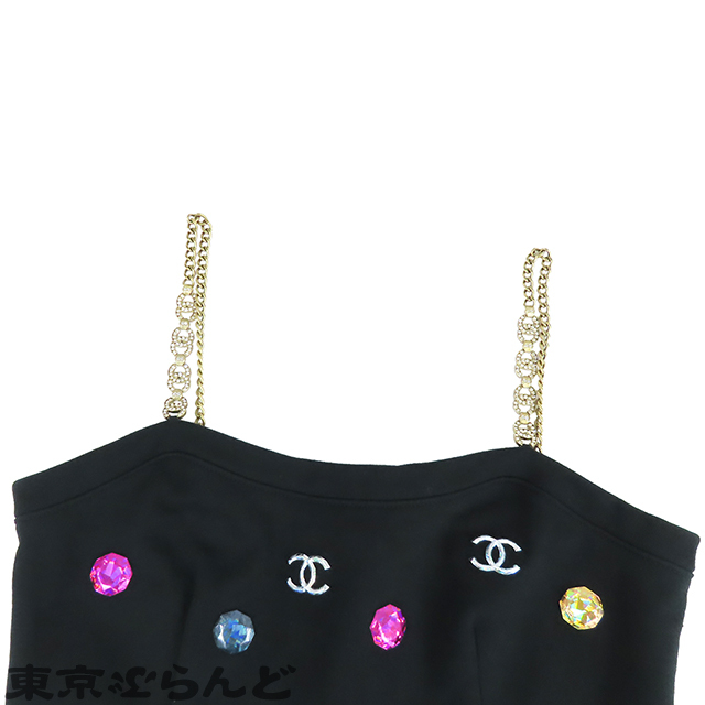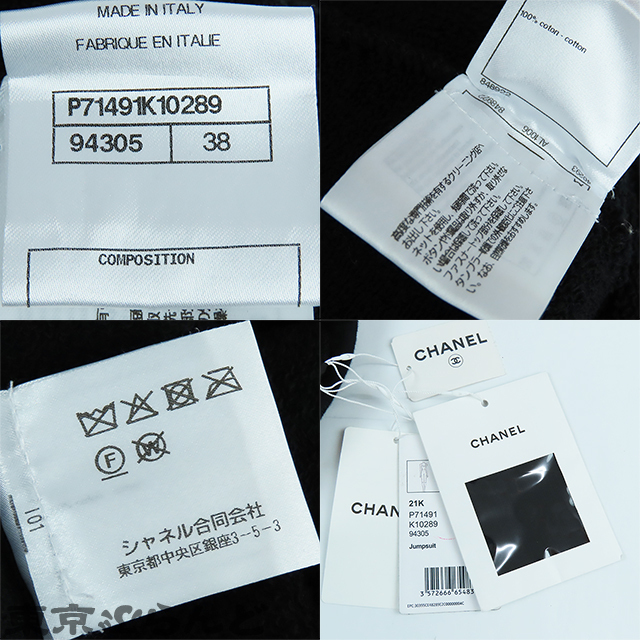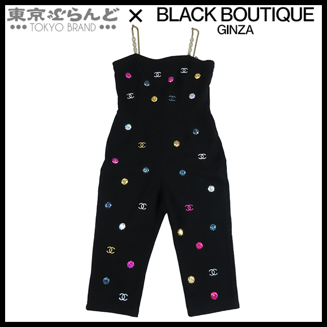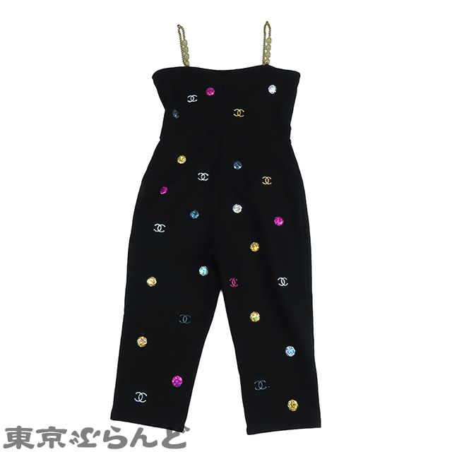 101813810 シャネル ジャンプスーツ P71491K10289 ブラックxマルチカラー ゴールド金具 コットン ココマーク オールインワン 38 ツナギ