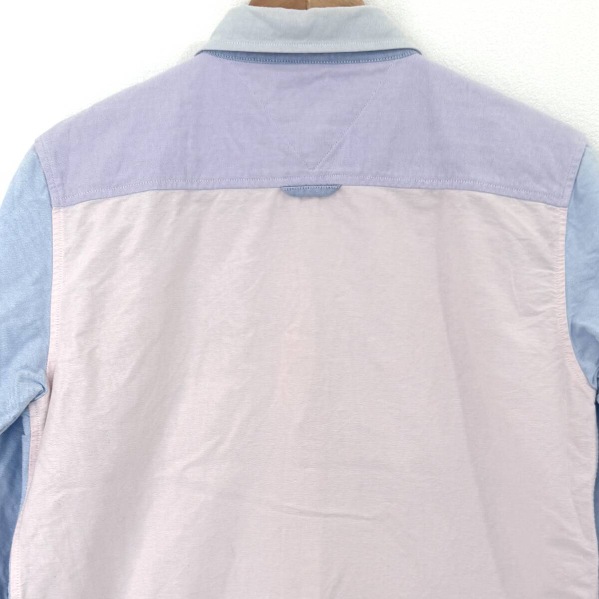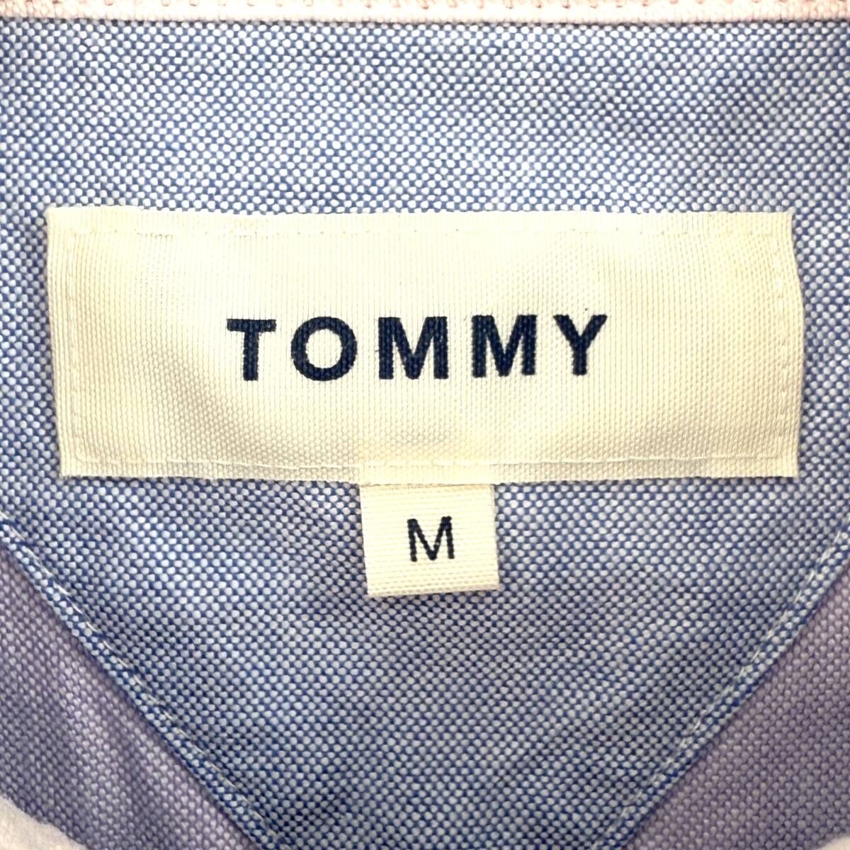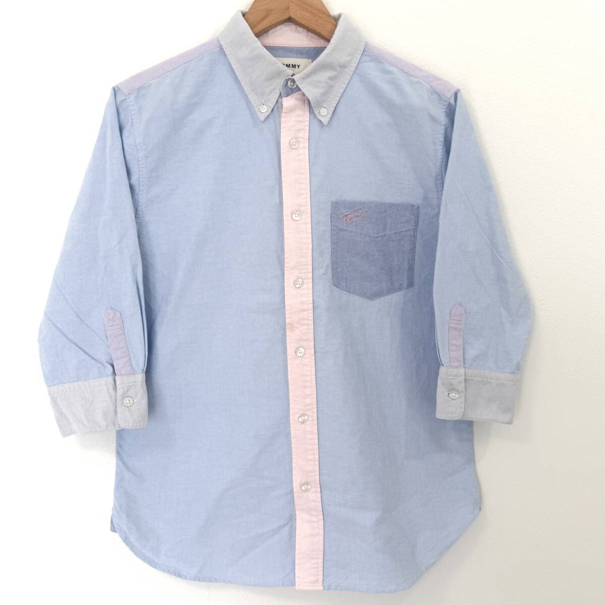 f3481ii TOMMY (トミー ) サイズM シャツ ボタンダウン 七分袖 パステル ブルー系×ピンク系 メンズ 綿100% コットンシャツ