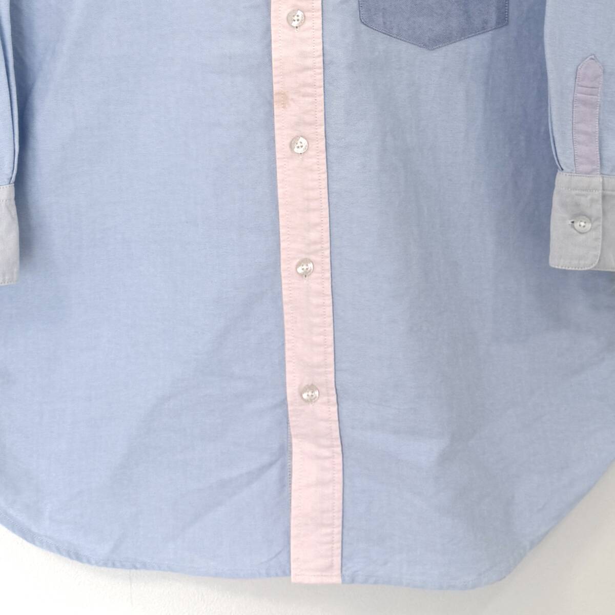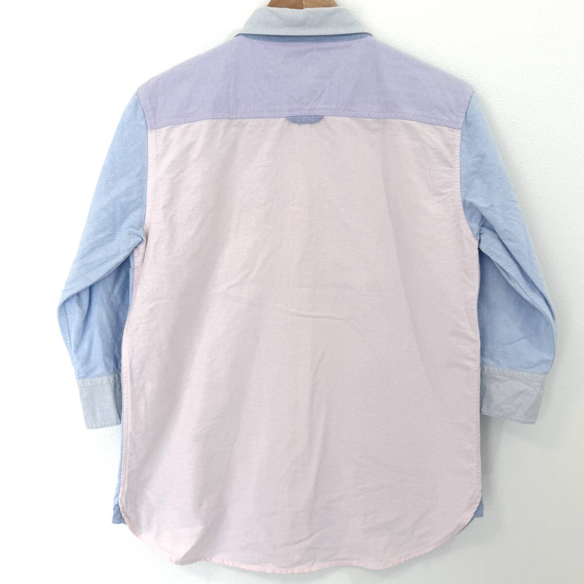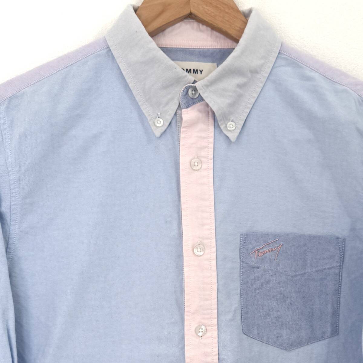 f3481ii TOMMY (トミー ) サイズM シャツ ボタンダウン 七分袖 パステル ブルー系×ピンク系 メンズ 綿100% コットンシャツ