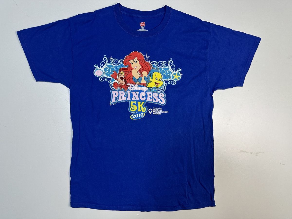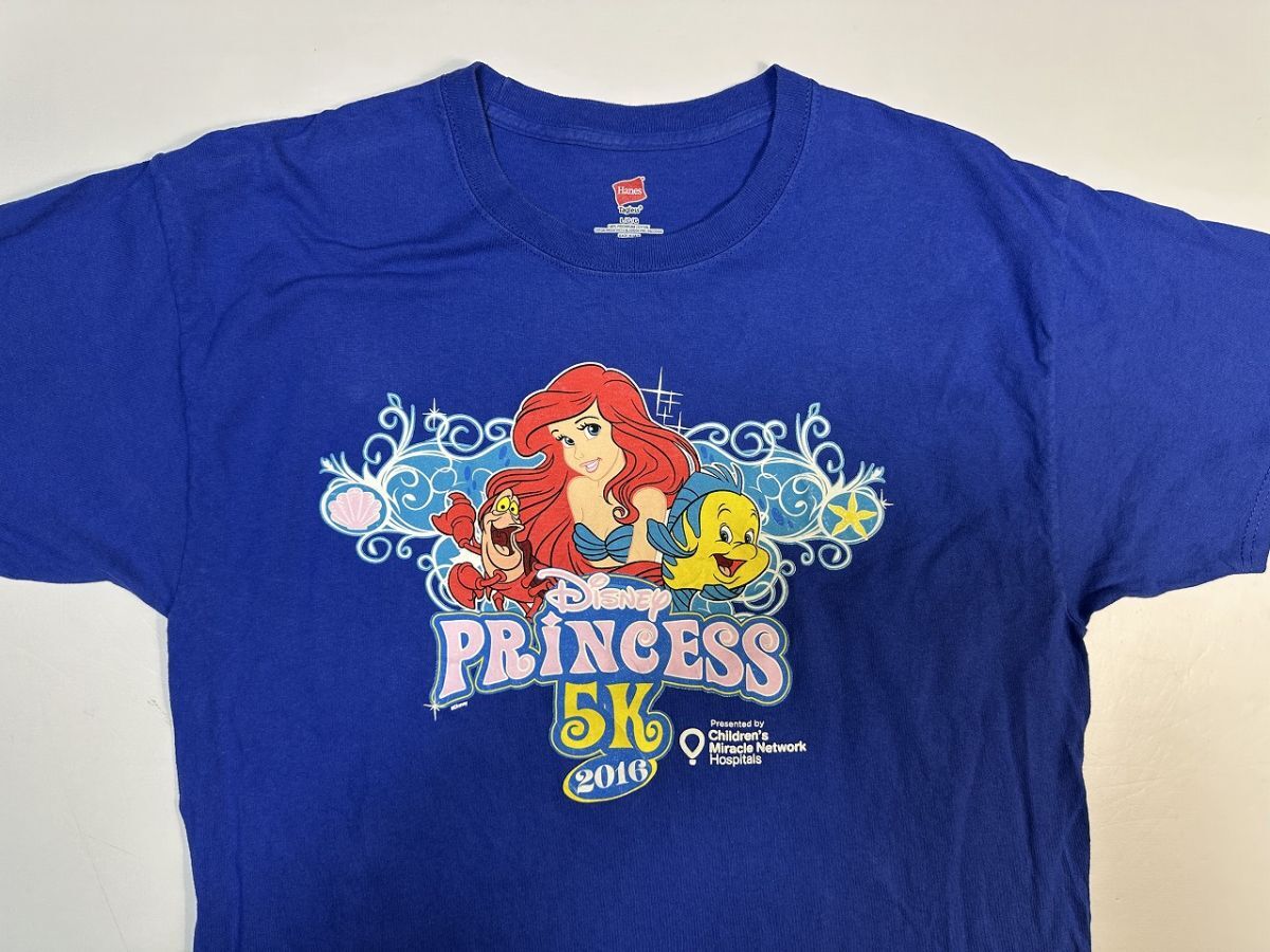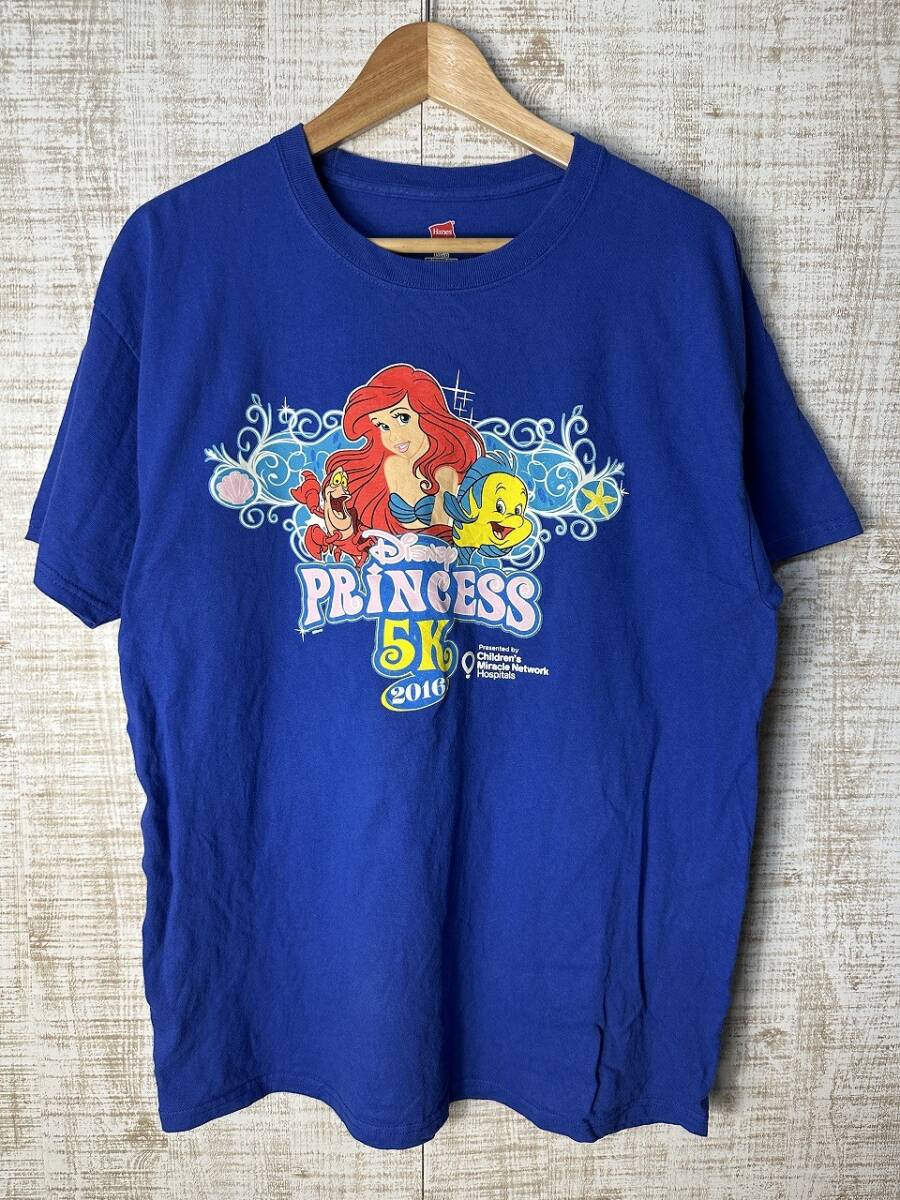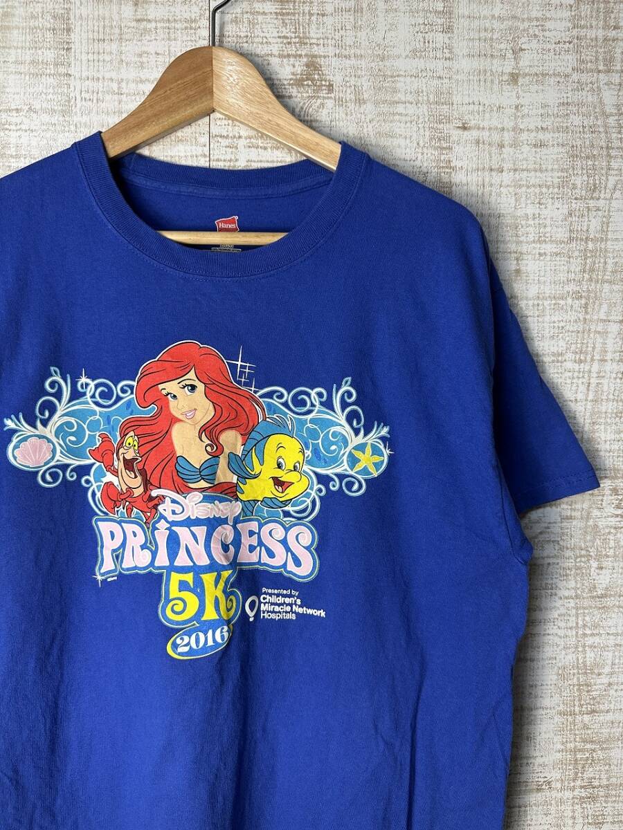 ●US USED Disney ディズニー キャラクター Tシャツ アリエル プリント Hanes バックプリント ブルー青【L】コットン