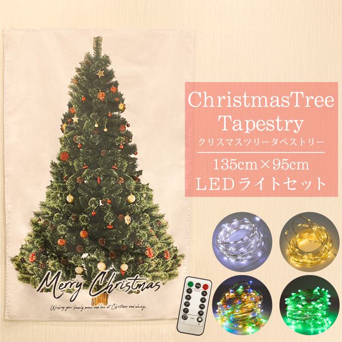 | 【おすすめポイント】 省スペースでお部屋を圧迫しない。 小さなお子様やペットのいるご家庭にも人気のクリスマスツリータペストリーです。 簡単に設置出来て倒れる心配もありません。 オーナメントがデザインされているので飾り付けなくても豪華な仕様。 テープなどでイルミネーションやオーナメントで飾り付ければさらに華やかに♪ 届いてすぐ飾れるお得なイルミネーションセット★ ■サイズ:135×95cm ■カラー・ホワイト ■セット内容・クリスマスツリー タペストリー×1 ・ジュエリーライト(電池は付属しておりません。)×1 ・リモコン(テスト用電池付属)×1 ※イルミネーションやオーナメントは付属しておりません |