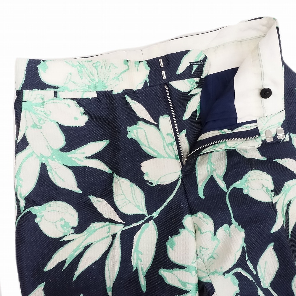【DRAWER ドゥロワー フラワー ジャカード スリムパンツ 花柄 テーパード スラックス ボトムス 38 M グリーン レディース】 | |