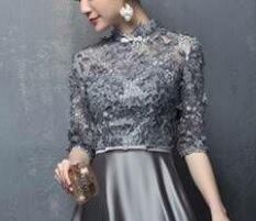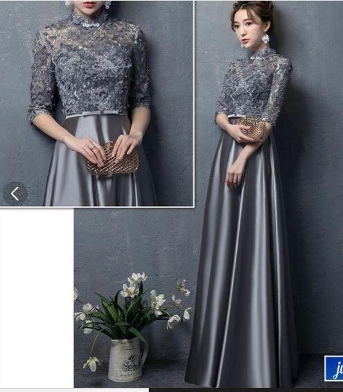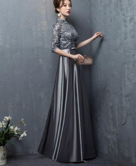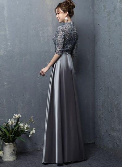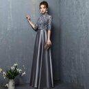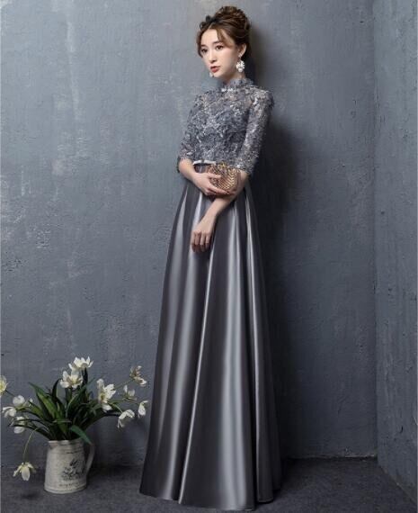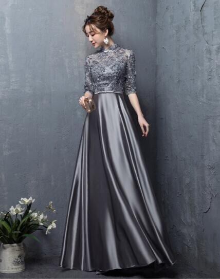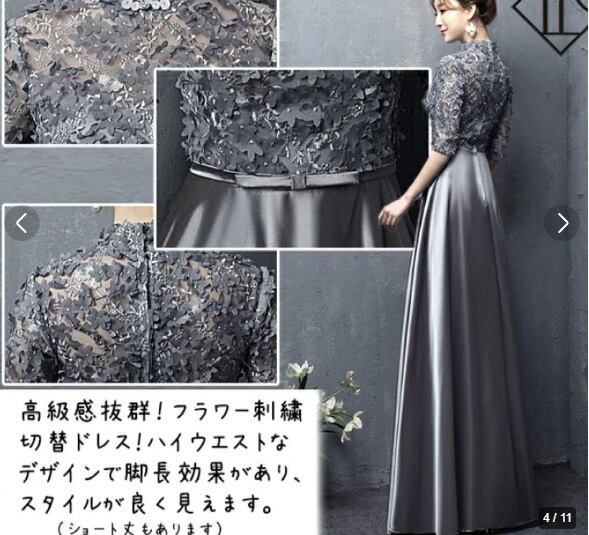 レース切替サテンロングドレスです。気品に満ちたとてもエレガントで上品なひとクラス上をいく一品です。トップス部分は花刺繍が施されたレースがサテン地に重ねられ豪華かつ上品でエレガントなドレスです。背中ファスナ-有。裏地有。胸パット有。