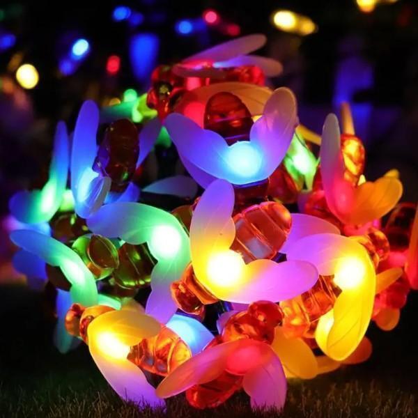 小さな庭の中にぽっとミツバチの光がついており心が和みます。ガーデニングの装飾として使っていますが、一年中色んな景色を楽しめます。