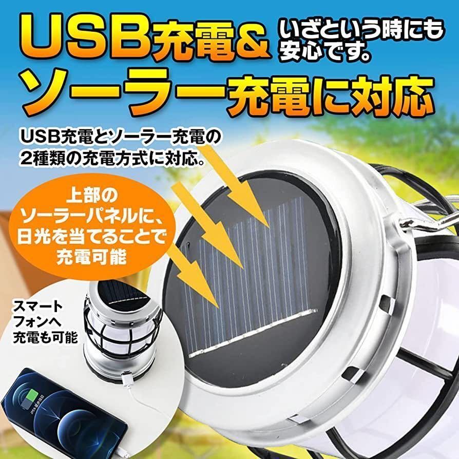 【USB&ソーラー充電式】USBとソーラーの2種類給電方式があります。LEDランタン本体にはUSB充電口を設けるので、パソコン、モバイルバッテリーから約3.5H充電完了です。また、ソーラーパネルを搭載し、日当たりに置いて自動充電できます。ソーラーランタンなら、外出先でも太陽の光さえあればどこでもいつでも充電可能です。いざという時にも安心です。
