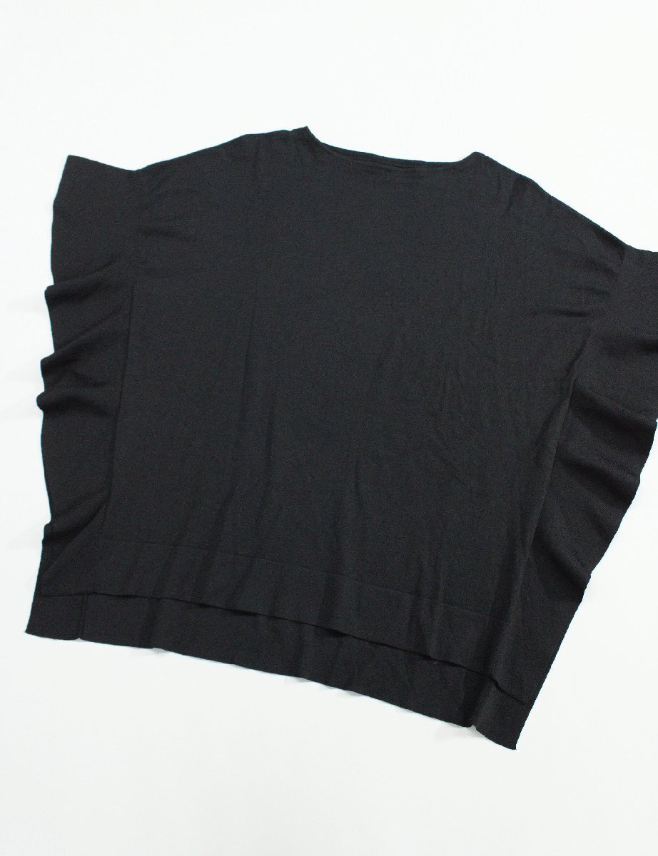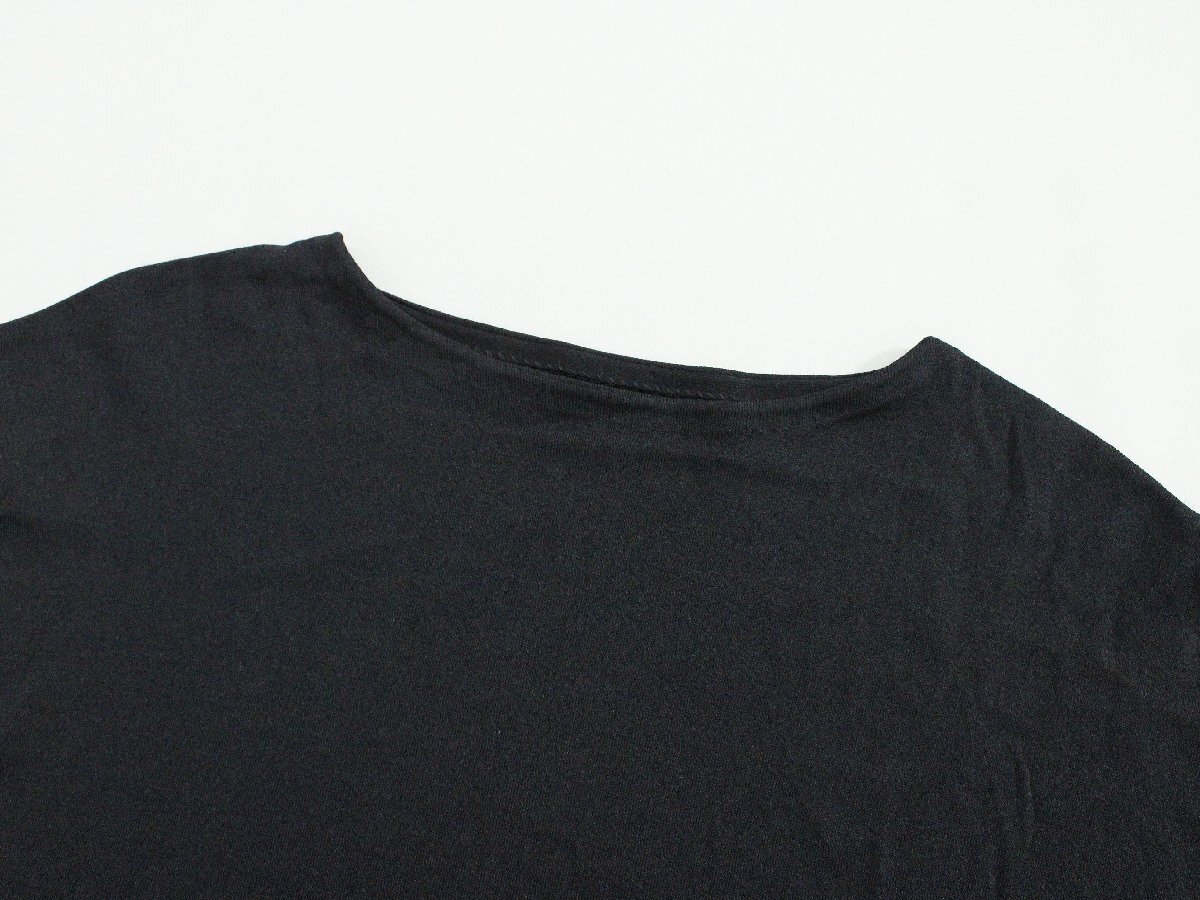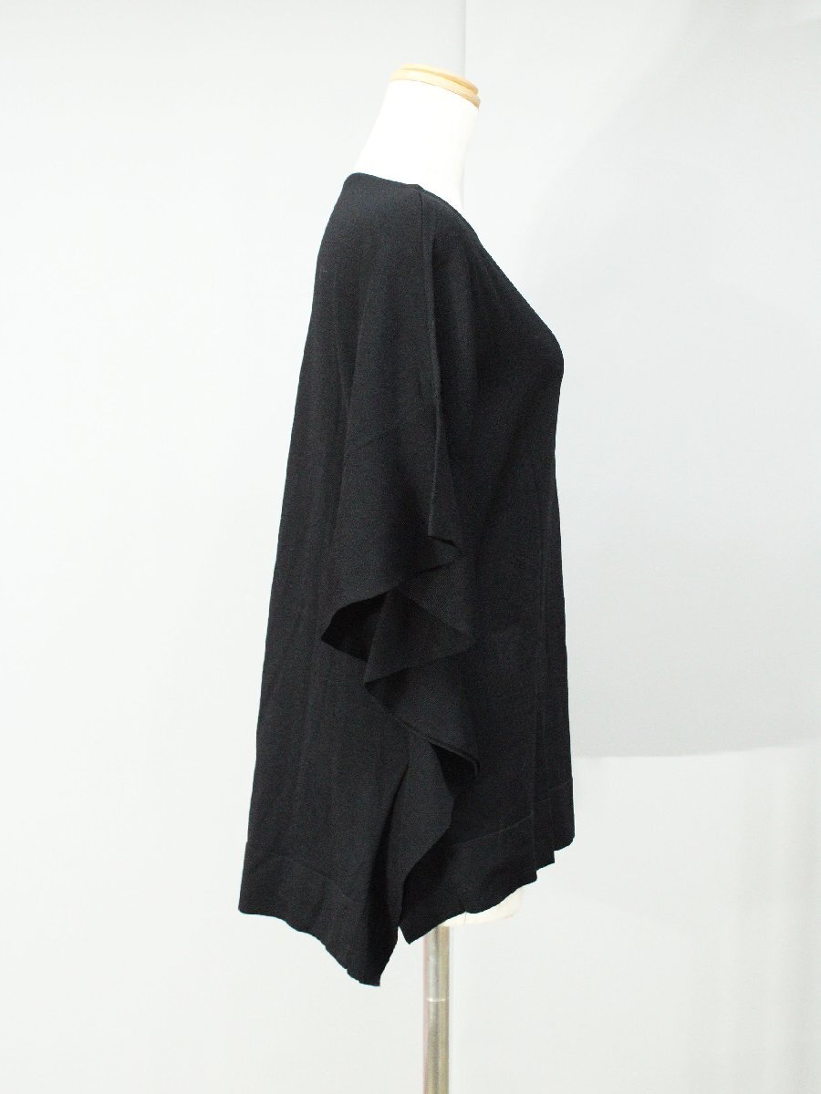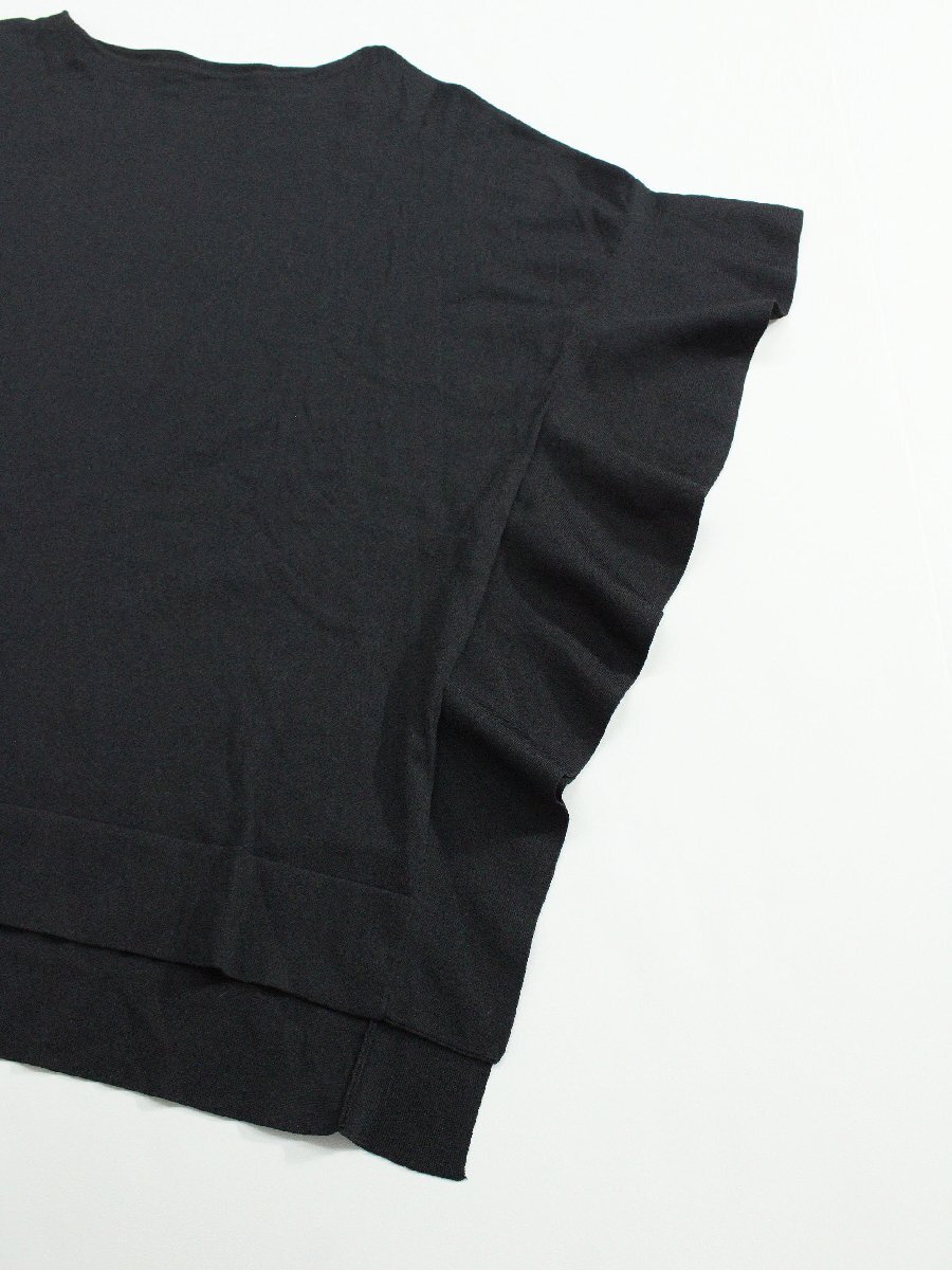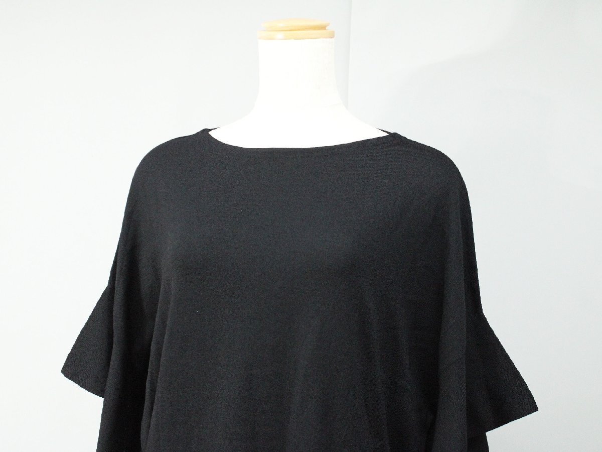 美品 MOGA/モガ 無地変形ヘムボートネックフリル袖ニットプルオーバー 黒2 rl735