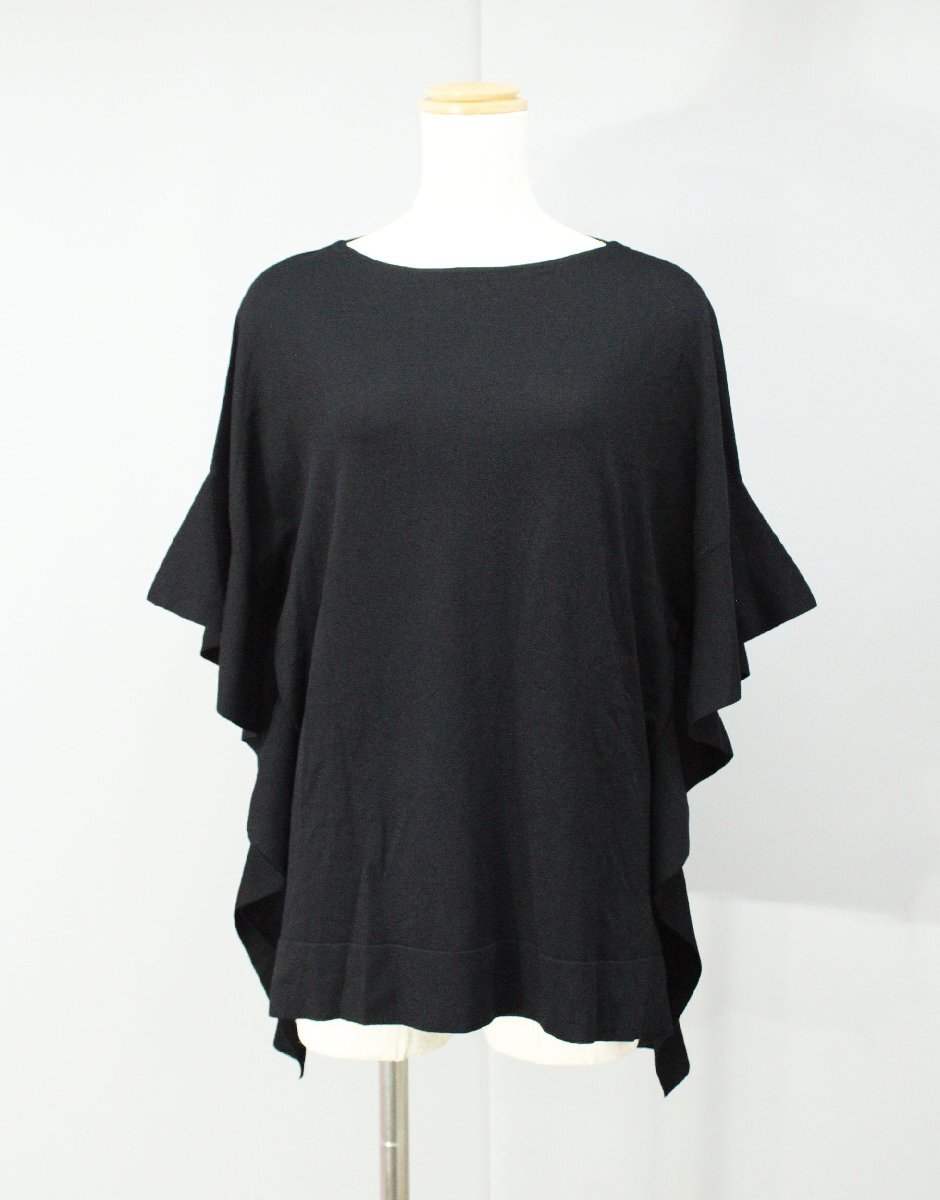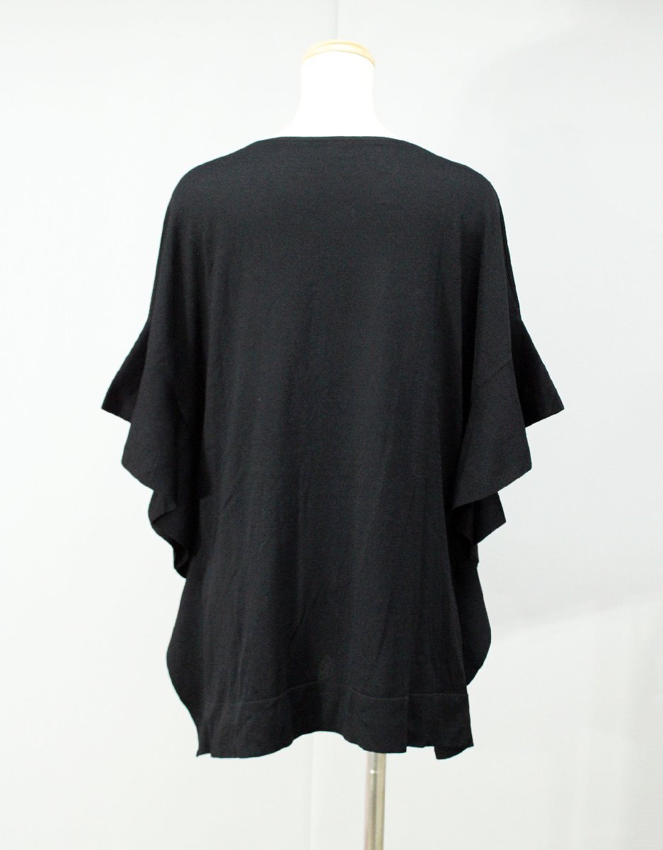 シックなブラックの無地のお色味、袖部分のフリルが女性らしいデザインです。