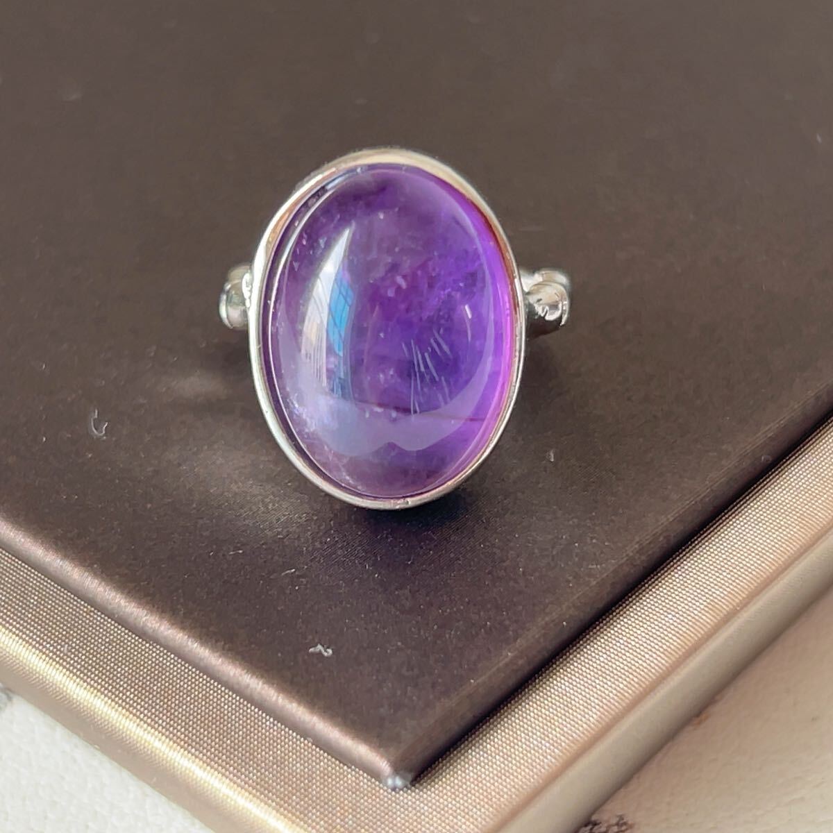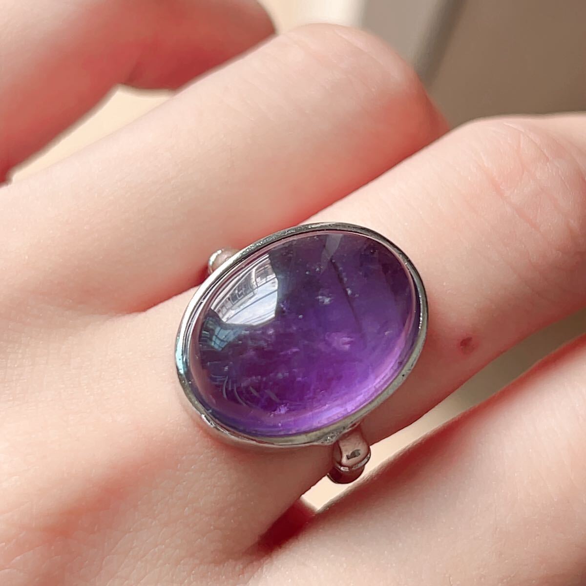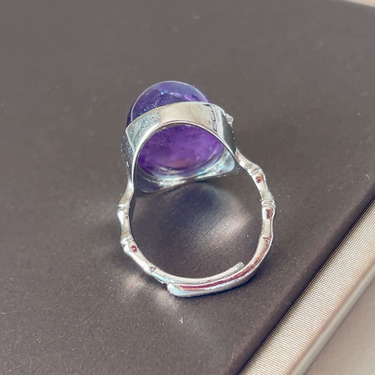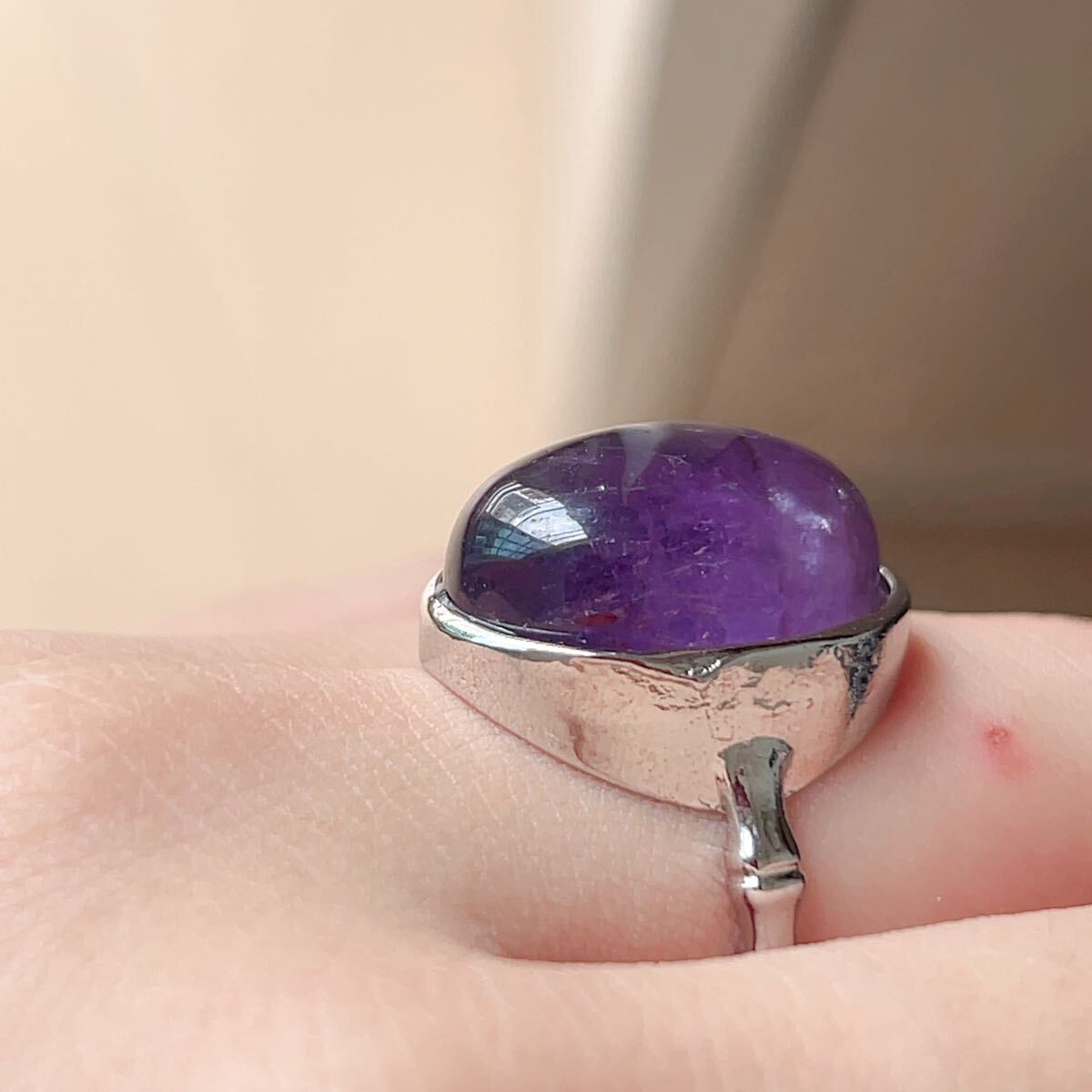 ◇紫水晶◇大き目◇アメジスト◇指輪◇リング◇フリーサイズ◇天然石◇パワーストーン◇巾着袋付き◇プレゼントにも039R8272