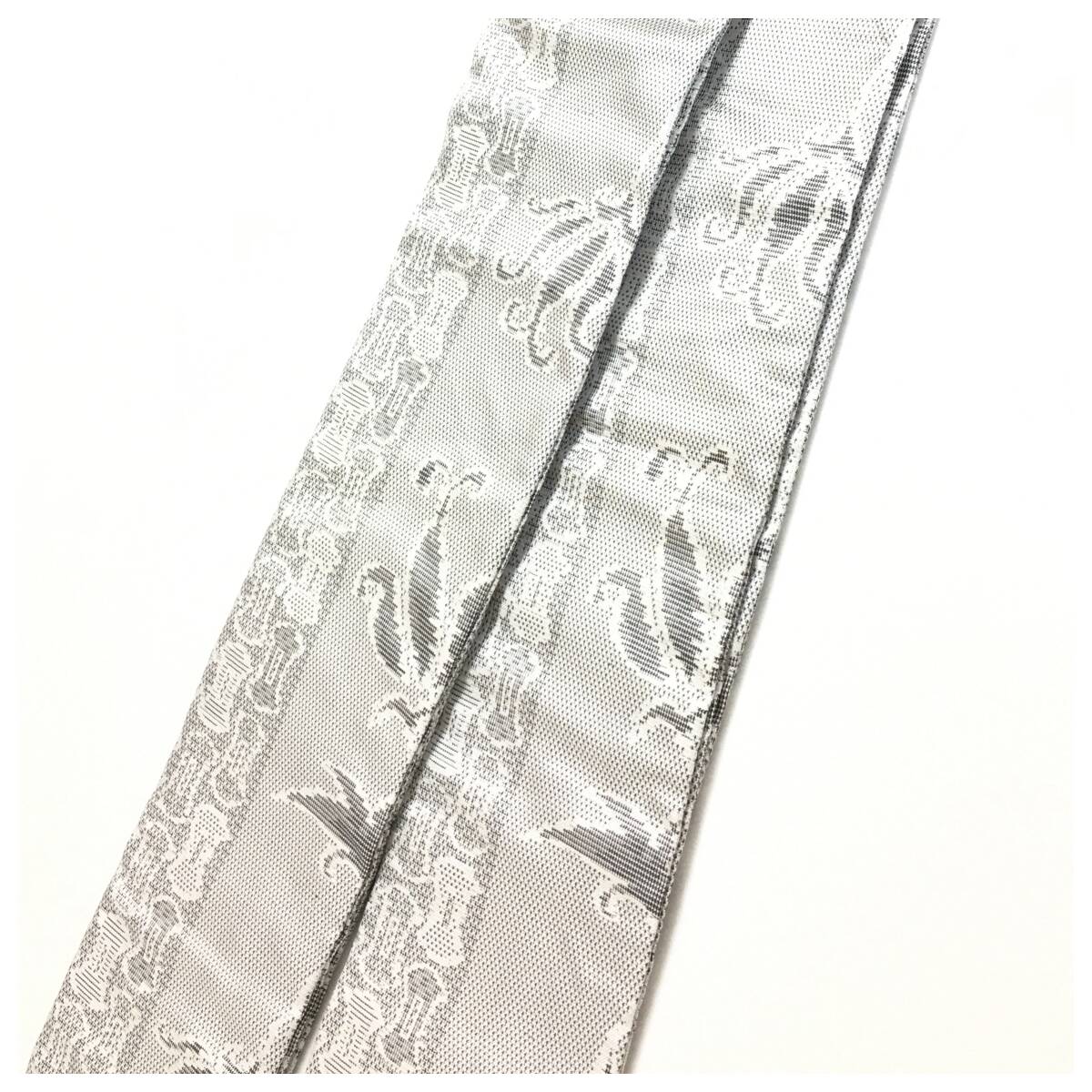 角帯 正絹 お召 男物 ホワイトグレー 全通柄 長さ380