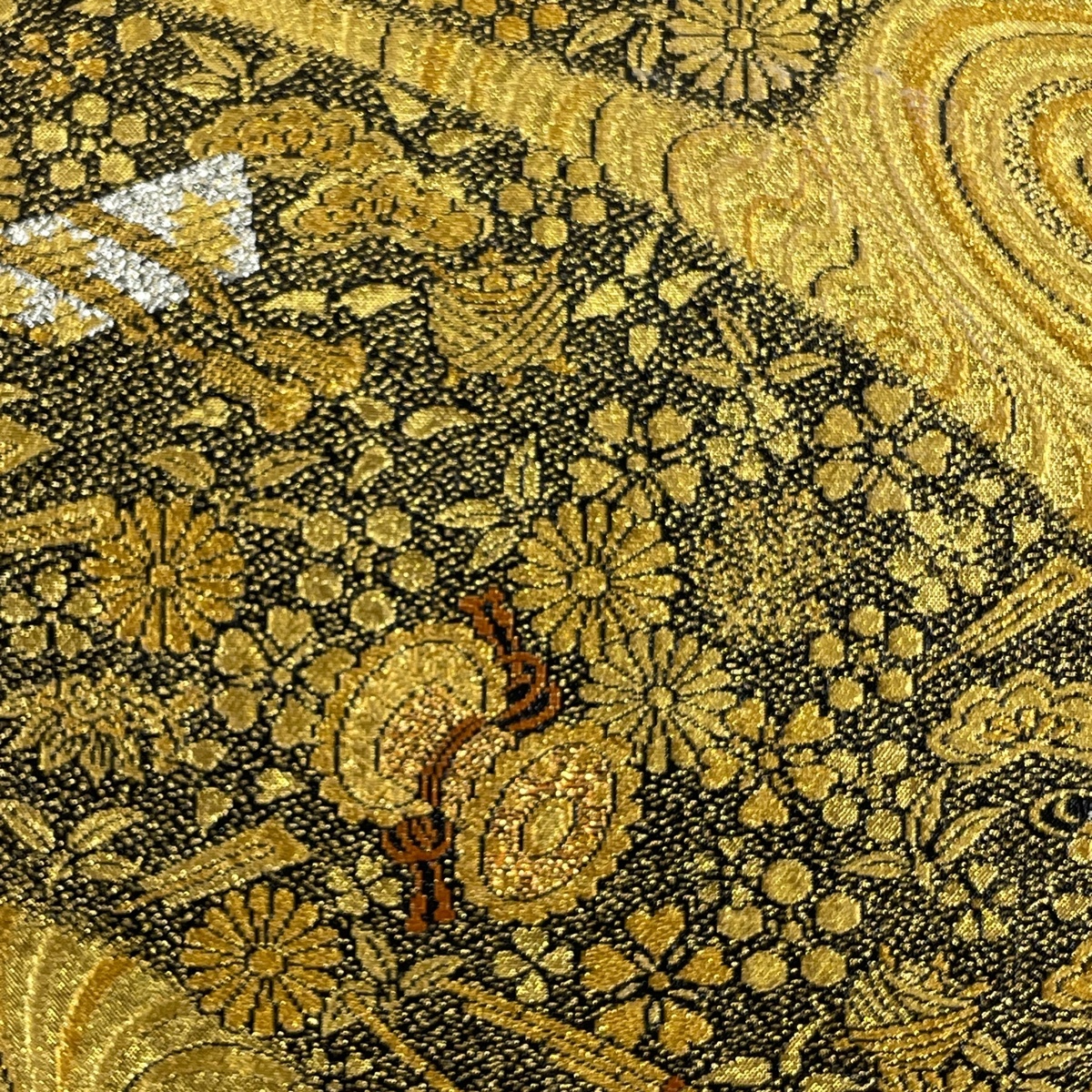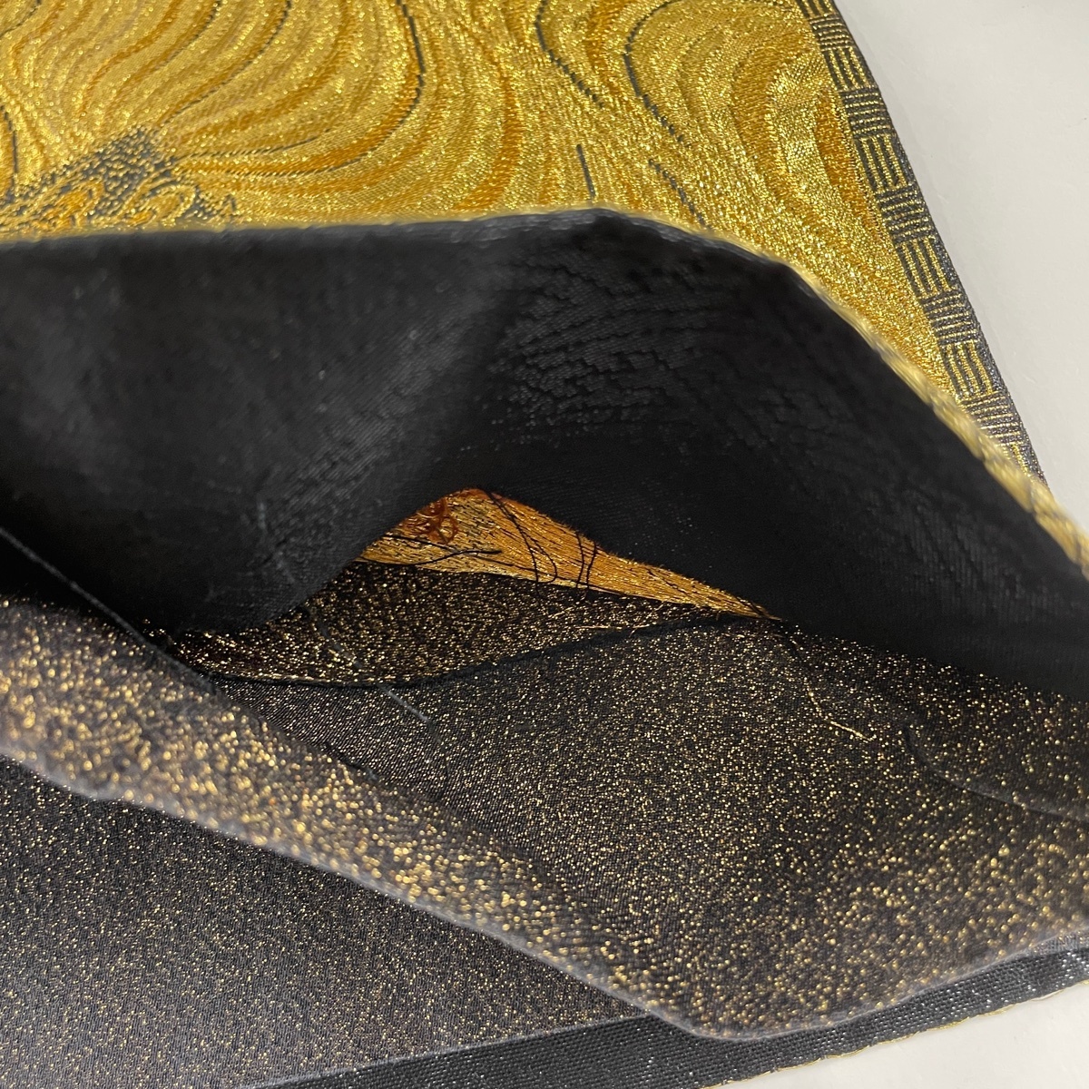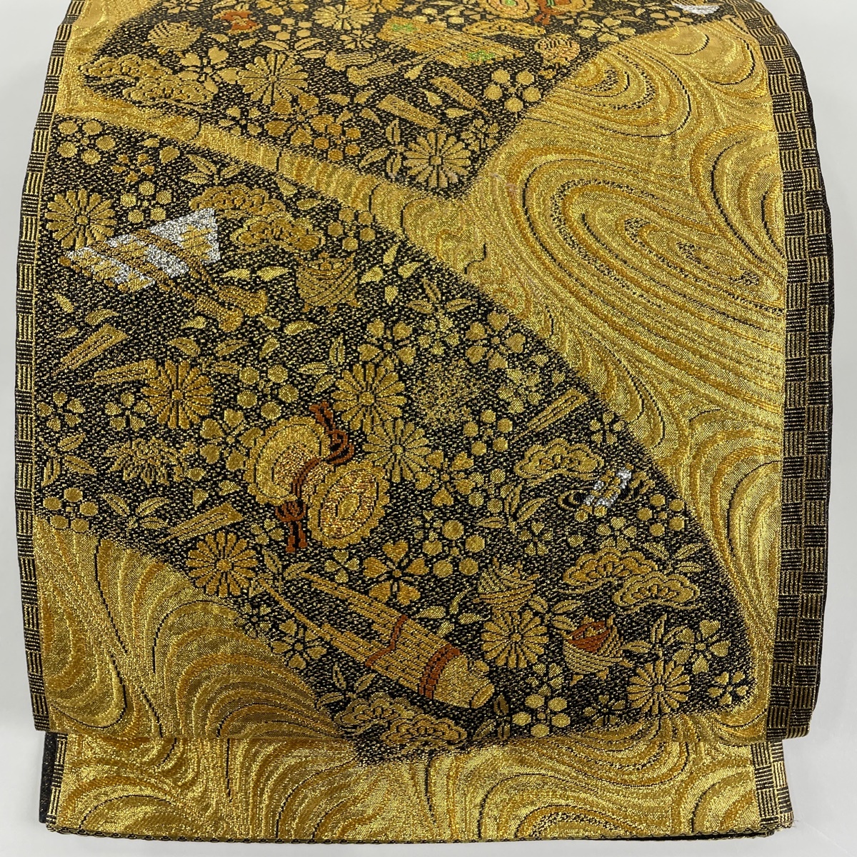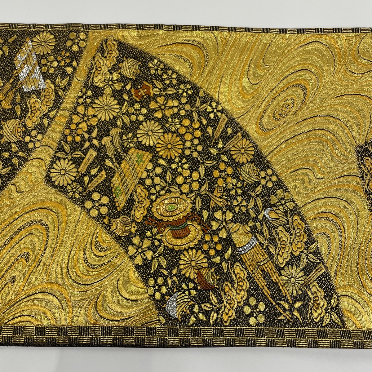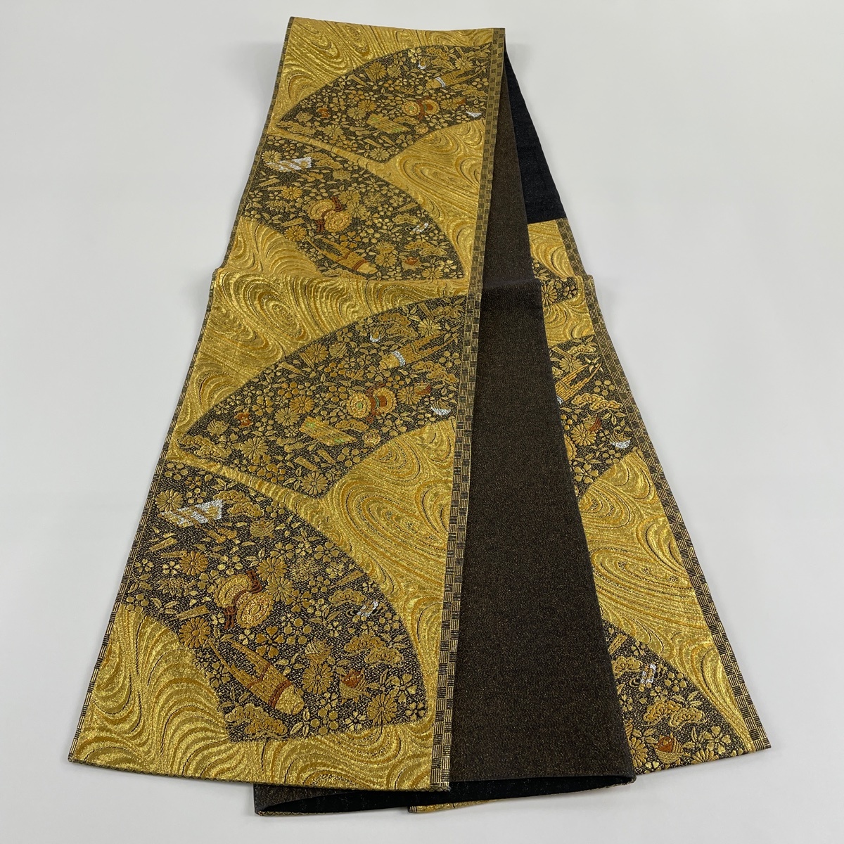| 袋帯 美品 秀品 扇面 流水 箔 金糸 黒 六通 正絹 【中古】 |