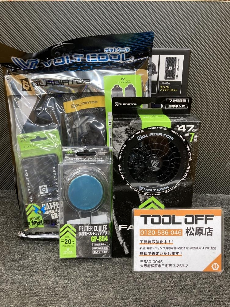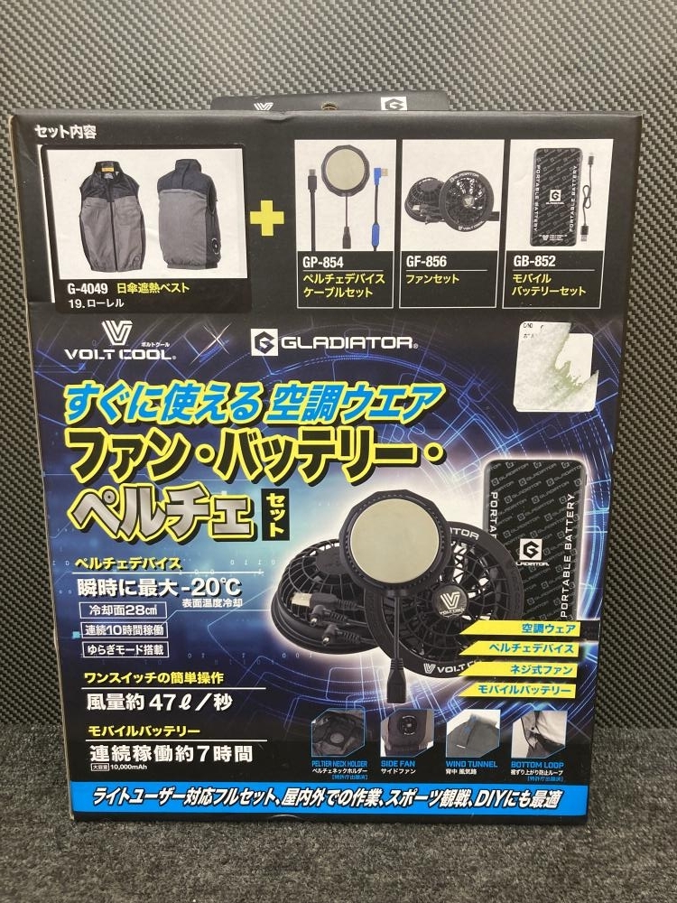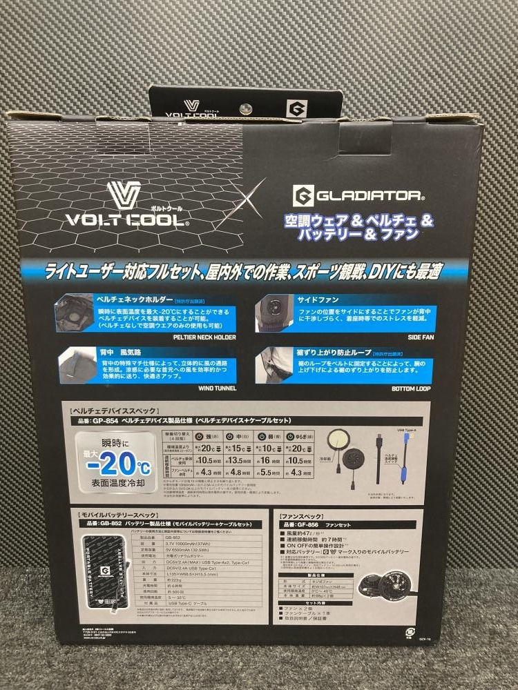 VOLT COOL ボルトクール ■商品名 空調服用ファン+バッテリー+ペルチェ ■型番 G-4049 GP-854 GF-856 GB-852 |