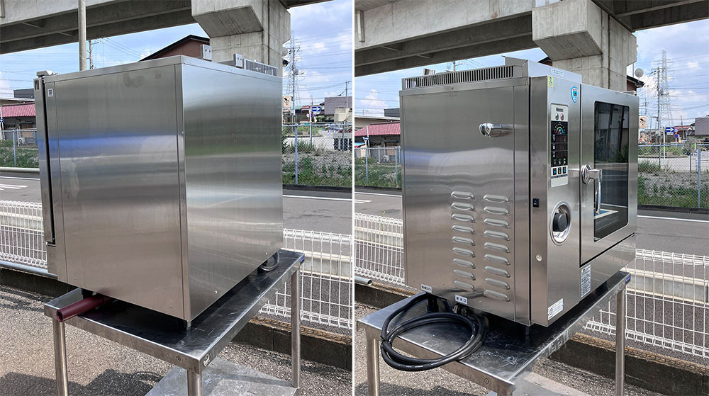 | スペック | 電源:三相200V 定格消費電力:5.5kW 定格電流:16A 庫内灯:LED 温度調節: ホット 20~300度 コンビ 20~300度 スチーム 50~150度 芯温 30~99度 ※詳細な仕様につきましては、メーカーへお問い合わせください。 |