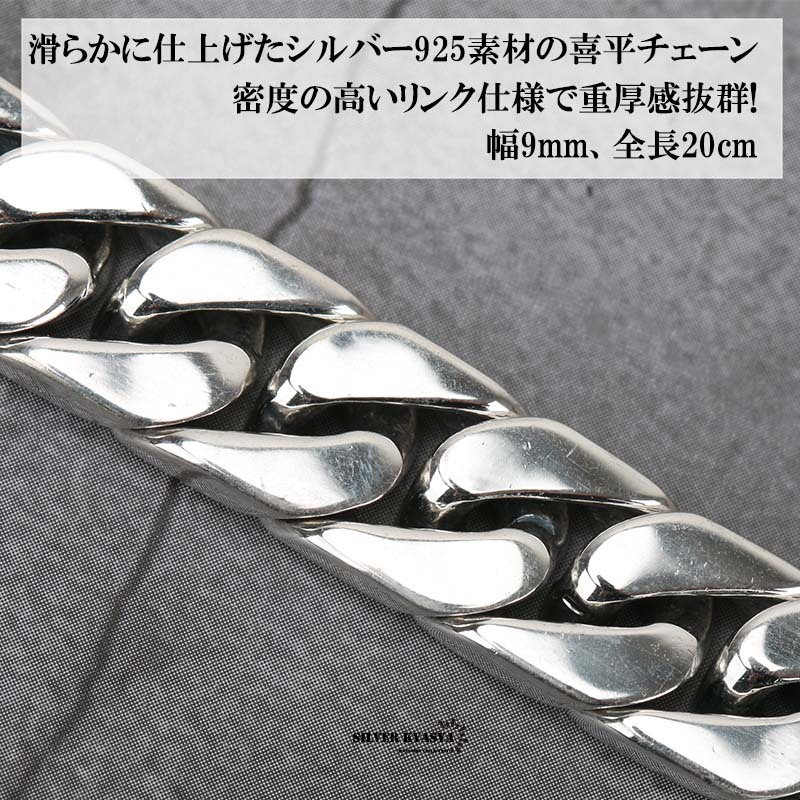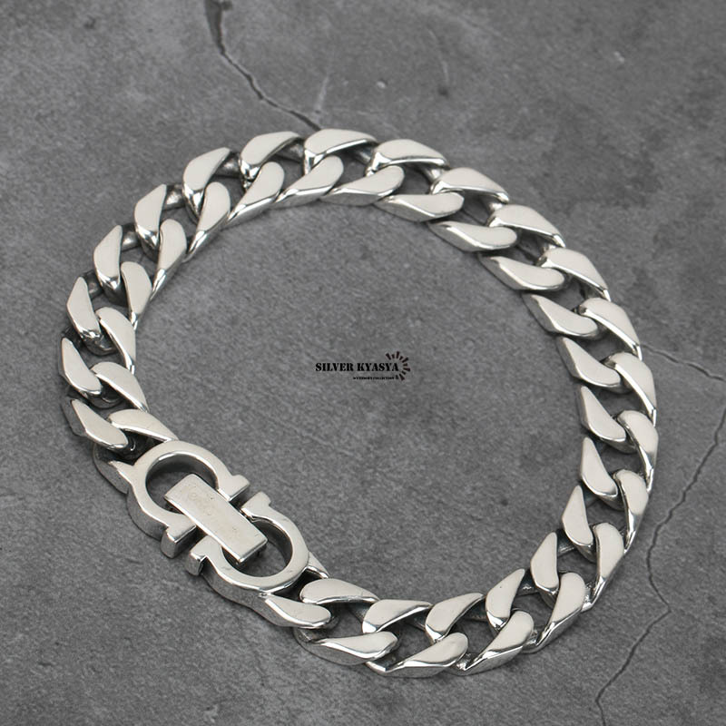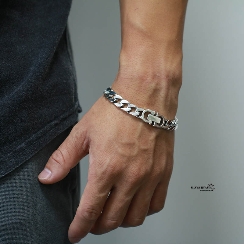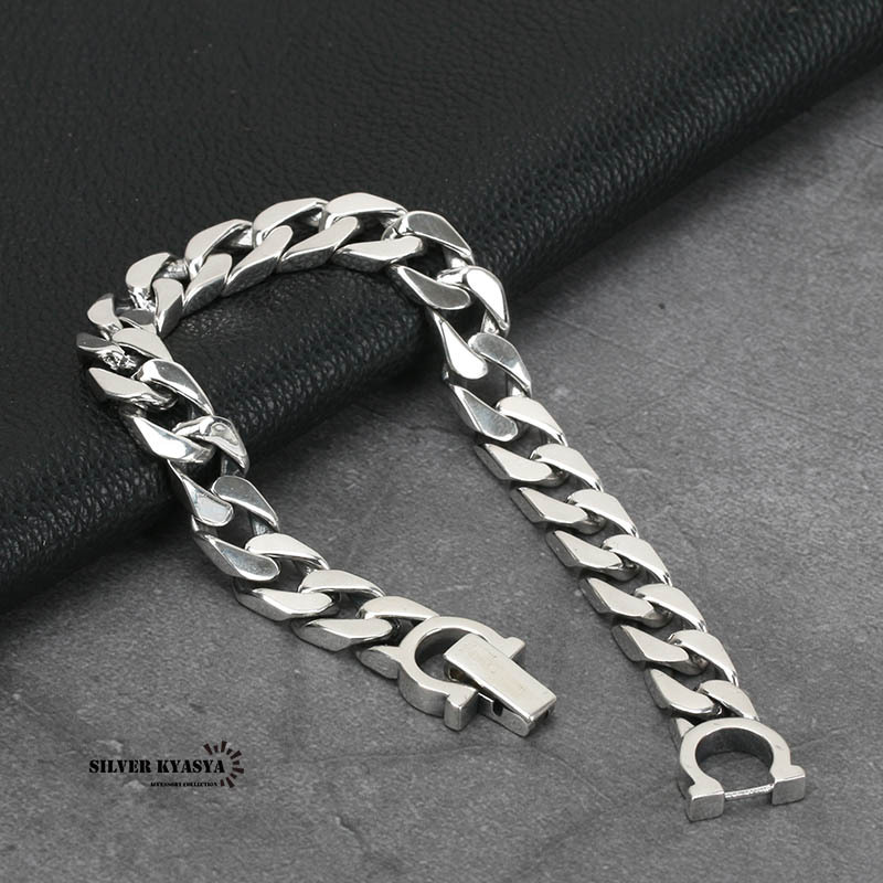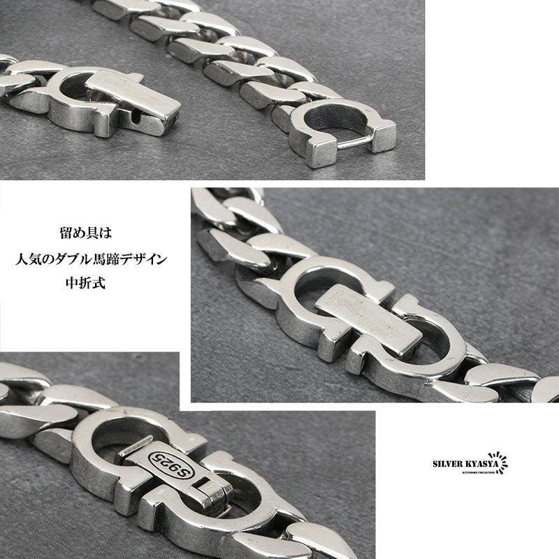 馬蹄 シルバー925 喜平ブレスレット シルバー喜平チェーン 幅9mm 中折式 ホースシューブレスレット925