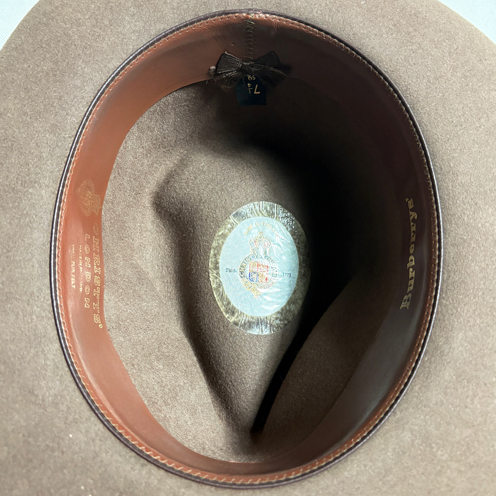 イギリスが誇る、老舗ブランドの究極コラボアイテム!こちらは1856年にロンドンで創業した、あのBURBERRY(バーバリー)社が, 同じく250年の歴史を持つCHRISTY'S LONDON (クリスティーズロンドン)社に別注した、推定70年代~80年代のヘリンボーンリボンハット!しかもデッドに近いニアミントコンディション!