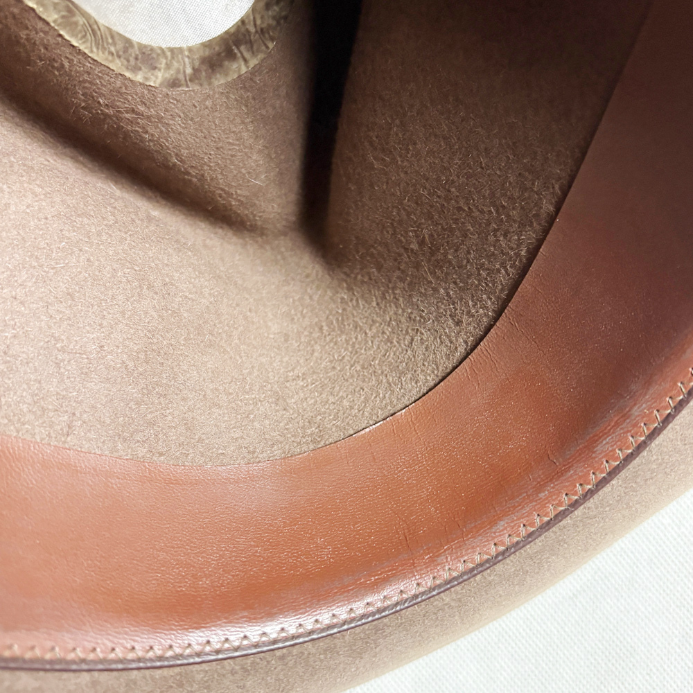 状態は天裏装飾に若干の汚れ、レザースベリに若干のスレなどありますが、非常に綺麗なニアミントコンディションなので、これからガンガン被って頂けます。