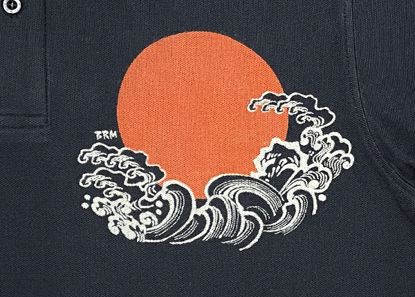 古来から日本人に深い結びつきがあった日の出(太陽)を、ダイナミックなタッチの波が彩るデザイン。
