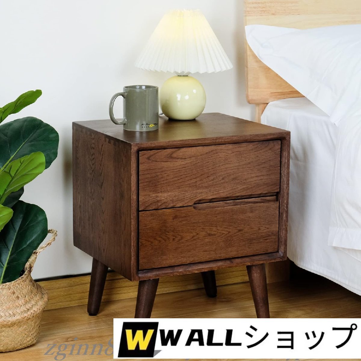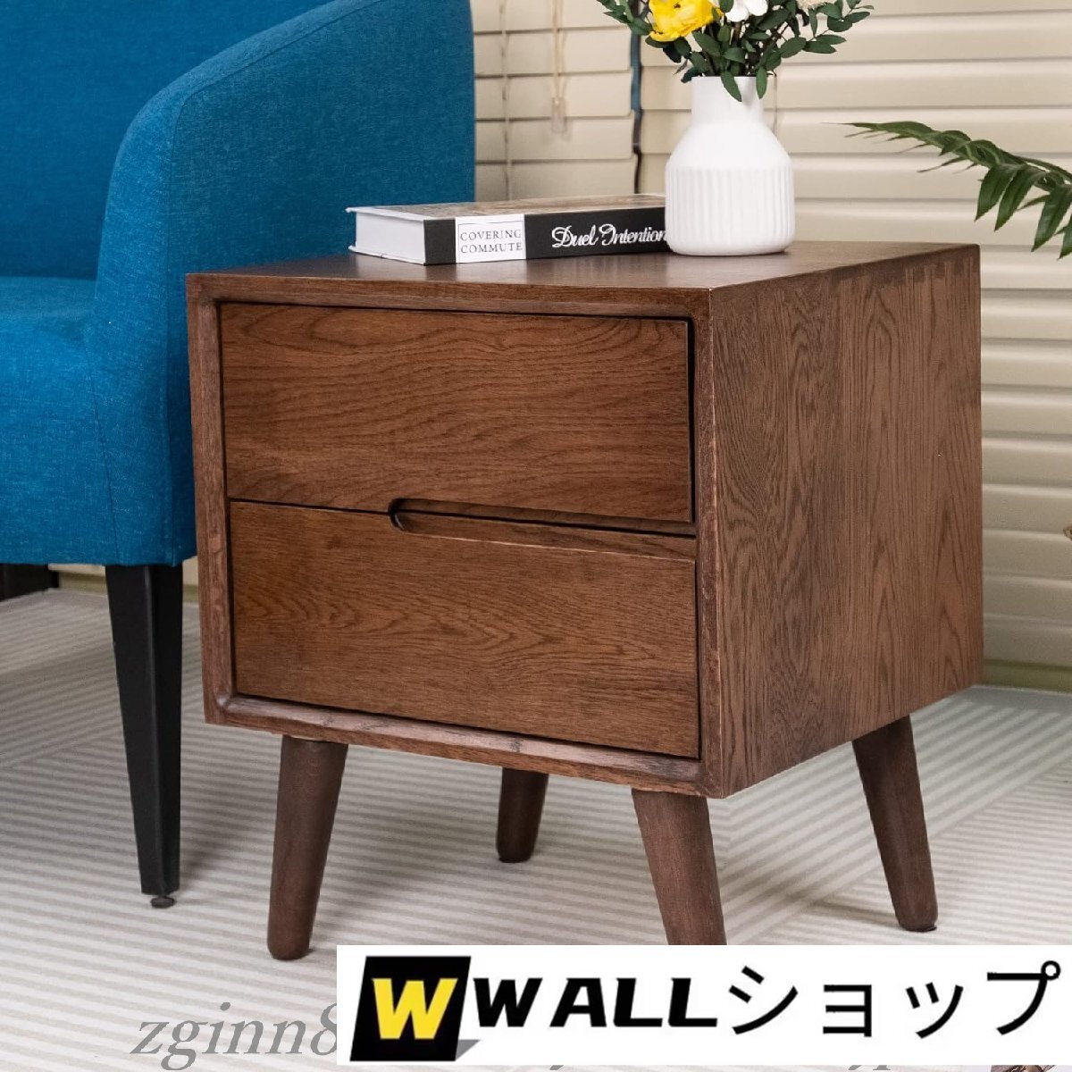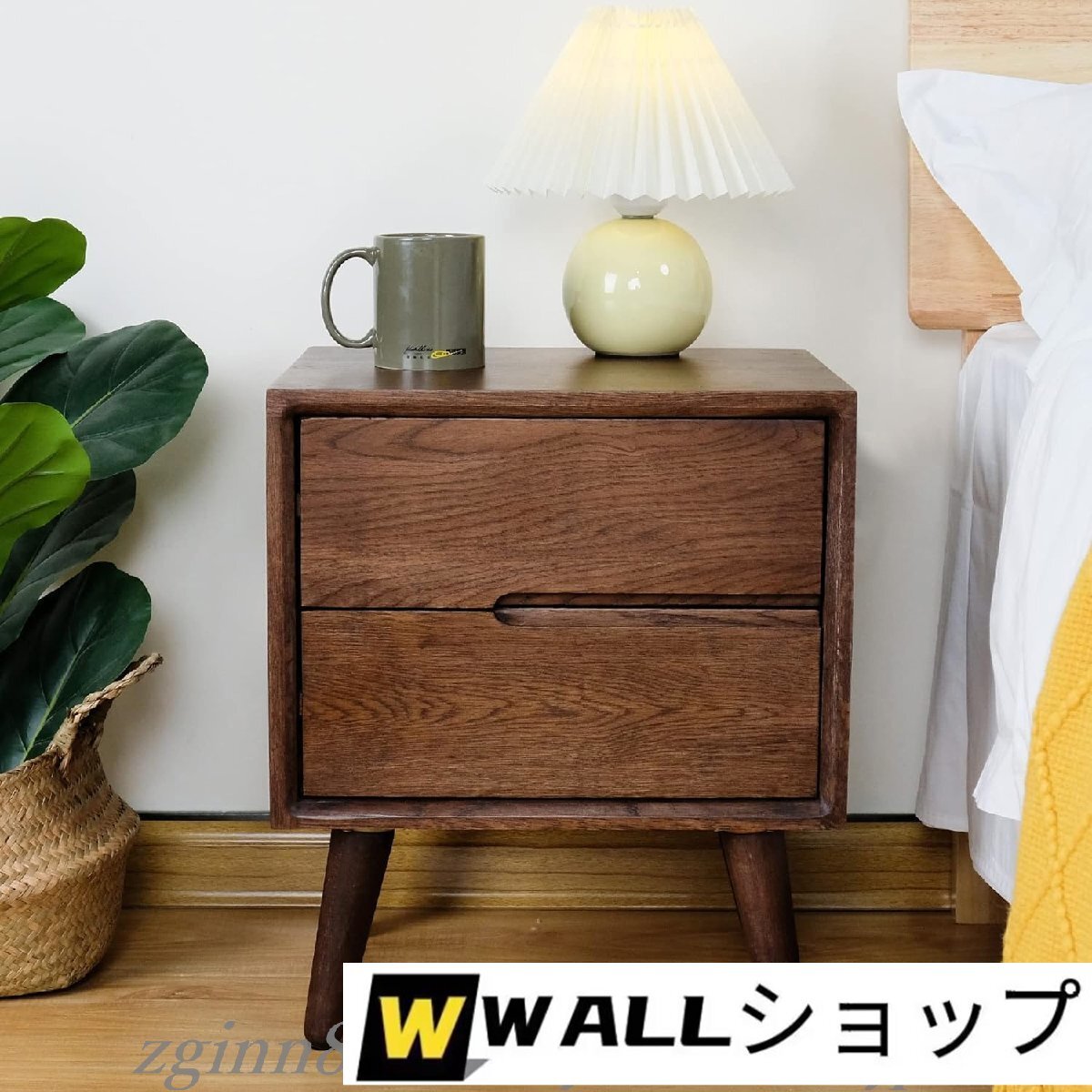 イドテーブル サイドチェスト ベッドテーブル 2引き出し付き 小型テーブル おしゃれ 木製 組立簡単 ソファサイドテーブル ウォルナット色
