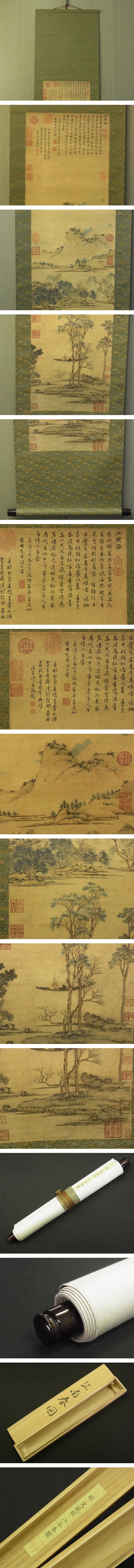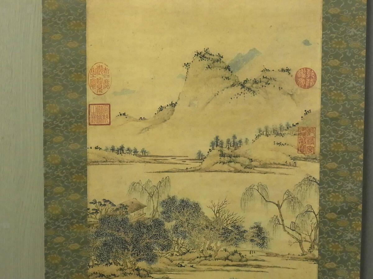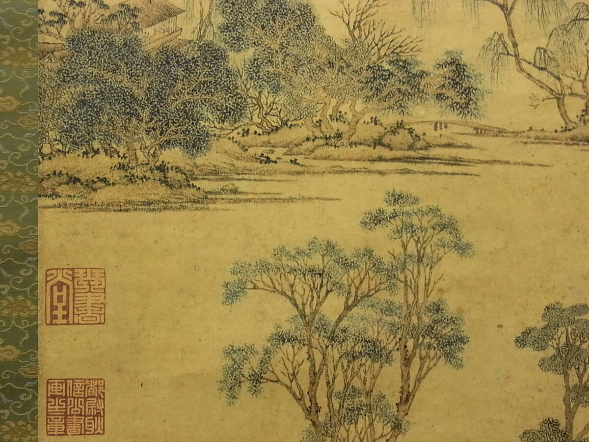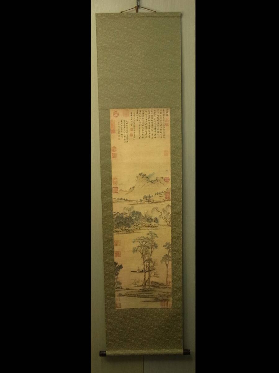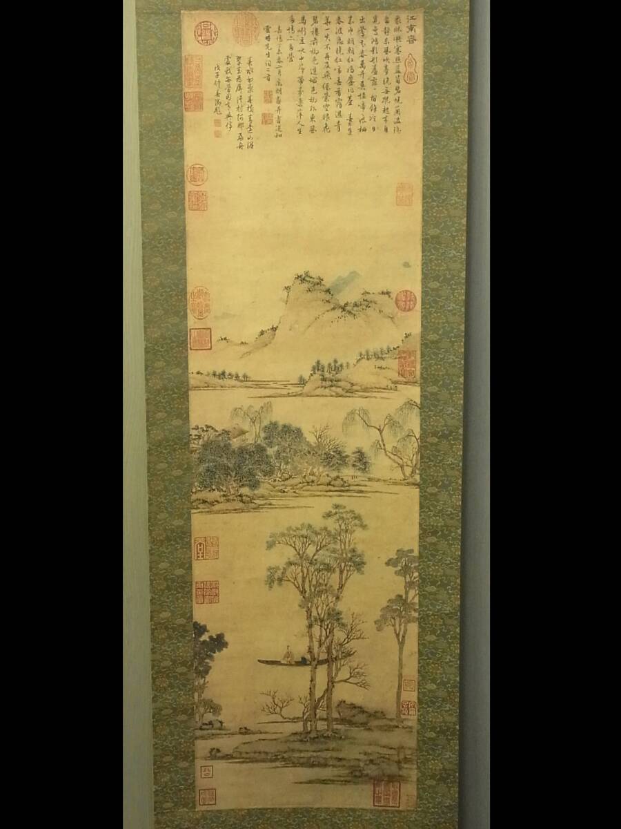 【工芸印刷】 t1847 蔵出 掛軸 文徴明 江南春図 中国画 風景 複製 書画 中国美術 南画 骨董