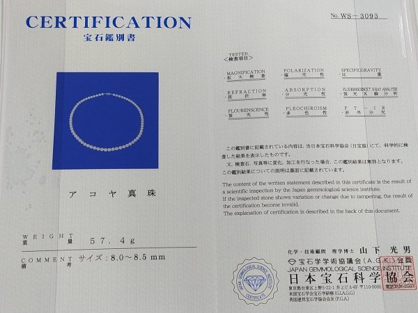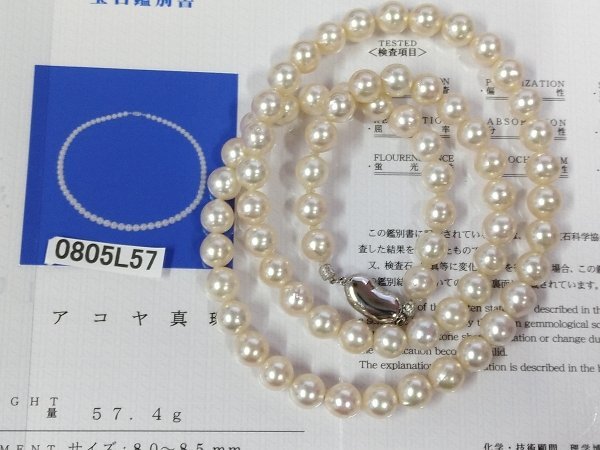 0805L57 本真珠 あこや ネックレス 宝石鑑別書付 約57.4g