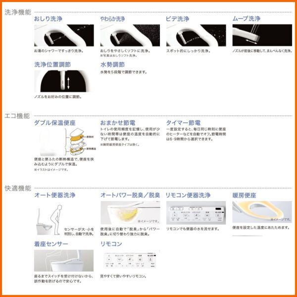 〜GGAが提案する、3つの特長〜 1. ノズルきれい 2. セフィオンテクト 3. トルネード洗浄 ※商品の詳細につきましてはメーカーHP・カタログでご確認願います ◆トイレの他、システムキッチン・ユニットバス・洗面化粧台等の水廻り商品も取り扱って おります。 ◆オプション等で別途お見積りが必要なケースのお問い合わせは、TEL・FAX・メールにて お気軽にどうぞ! ◆メーカーの定価見積書からもお買い求め頂けます。事前にご連絡の上、FAXまたはメール にてお送り下さい。弊社価格の見積書を作成致します。 ◆サイズ違い等、ショップ上に掲載されていない商品をご希望の方はお問い合わせ下さい。 ⇒ クリックで”WEBカタログ”にリンクします |