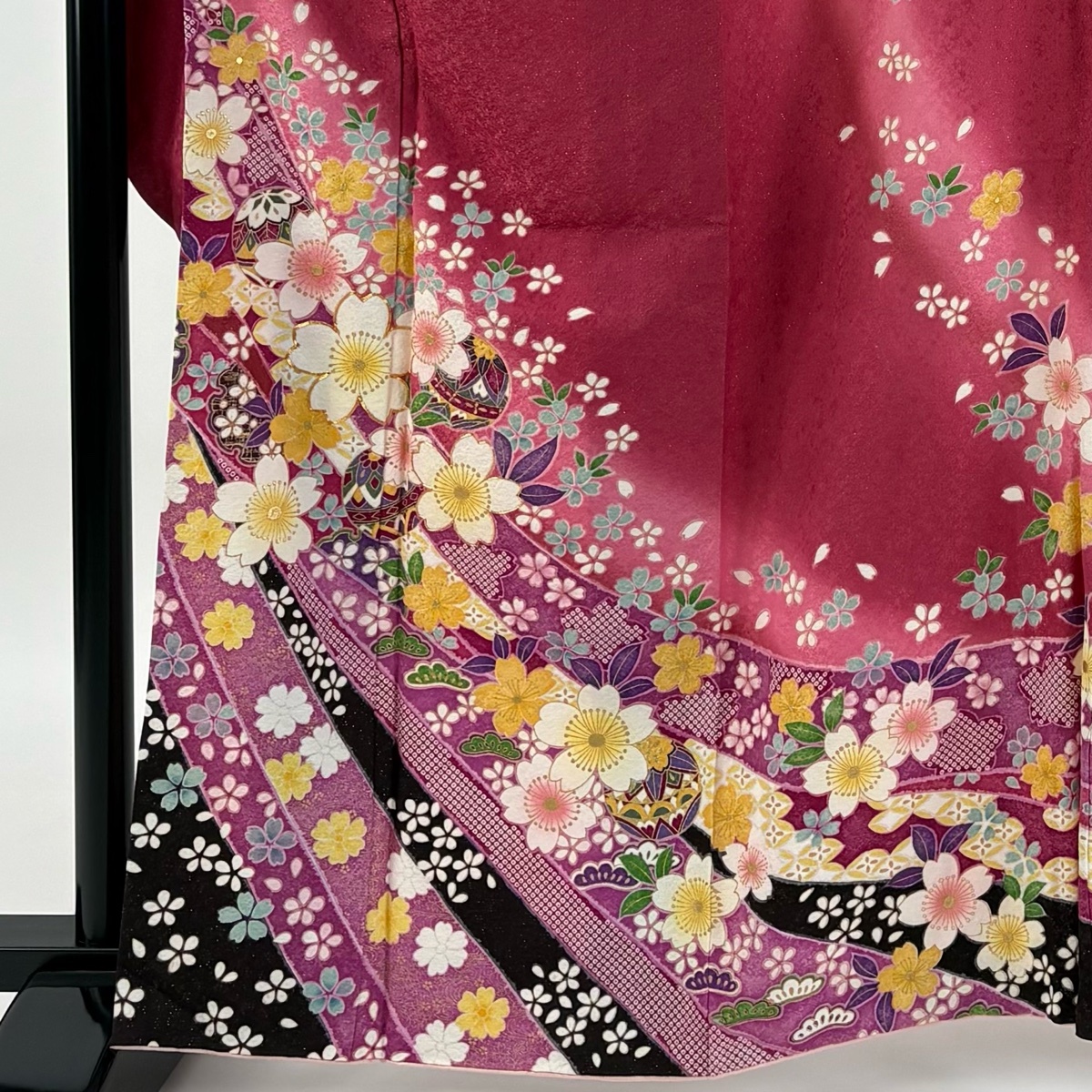 | 振袖 美品 逸品 桜 手鞠 金通し 金糸 濃ピンク 袷 身丈164 裄丈68.5 L 正絹 【中古】 |