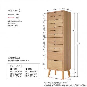 | 仕様 | ラッカー塗装 耐荷重 天板:約25kg 引出し(小・1杯):約10kg 引出し(大・1杯):約10kg:全体:約155kg 組立(2人):約15分  |