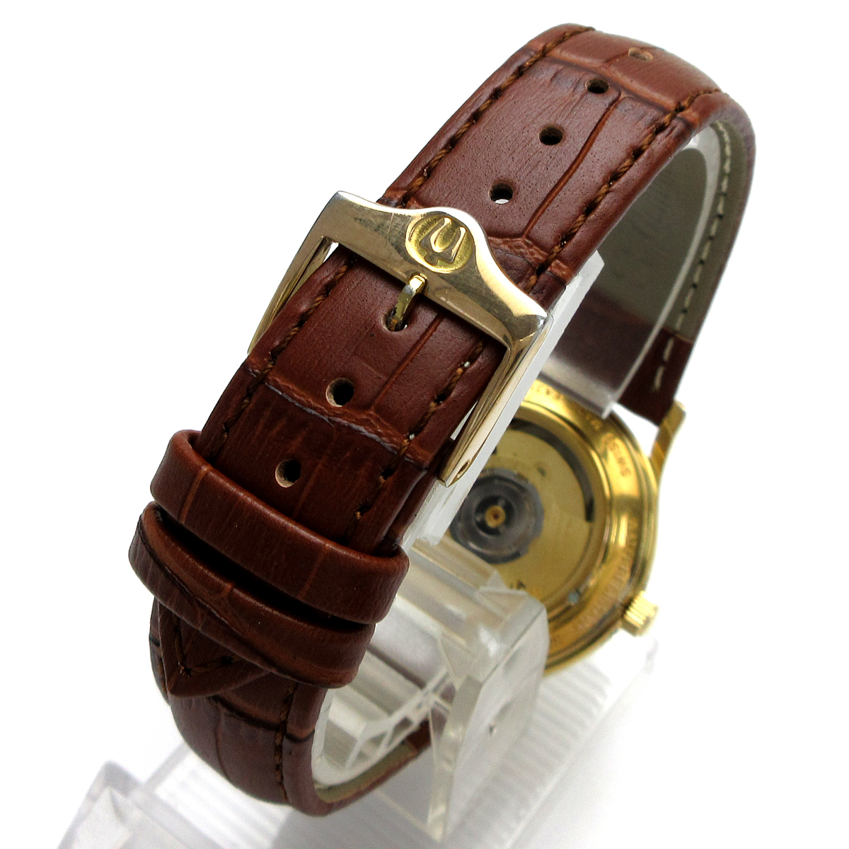 | おすすめポイント! | ■アメリカ合衆国の時計メーカー『ブローバ(BULOVA)』。 ■高精度が実現されたスイス製モデル。 ■ヴィンテージ調のデザインがお洒落なドレスウォッチ。 ■3時位置にはカレンダーを配したオートマチック モデル。 ■裏側はスケルトンになっていて内部ムーブメントが視認可能。 ■日常使いからお仕事など幅広く使えるアイテム。 ◎オートマチックムーブメント。 ◎カレンダー。 ◎シースルーバック。 ◎日常生活防水。 ---【商品状態】--- ☆外装、メッキハゲや打ちキズがあります。 ☆風防にキズがあります。 ☆裏蓋ガラスにキズがあります。 ☆バンド(社外品)、キレイです。 ☆尾錠はブローバです。メッキハゲや小キズあります。 ☆ランクはケース【6~7】、ベルト【7】、風防や裏蓋のガラスにキズがありますので総合【6】です。 ※商品画像はお客様のモニター環境によっては色調が異なって見える場合がございますのでご了承ください。 |