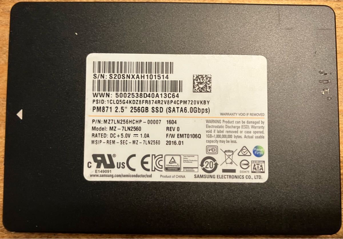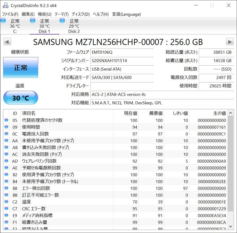 【使用時間29025時間】SAMSUNG 256GB MZ-7LN2560 2.5 SATA SSD 222