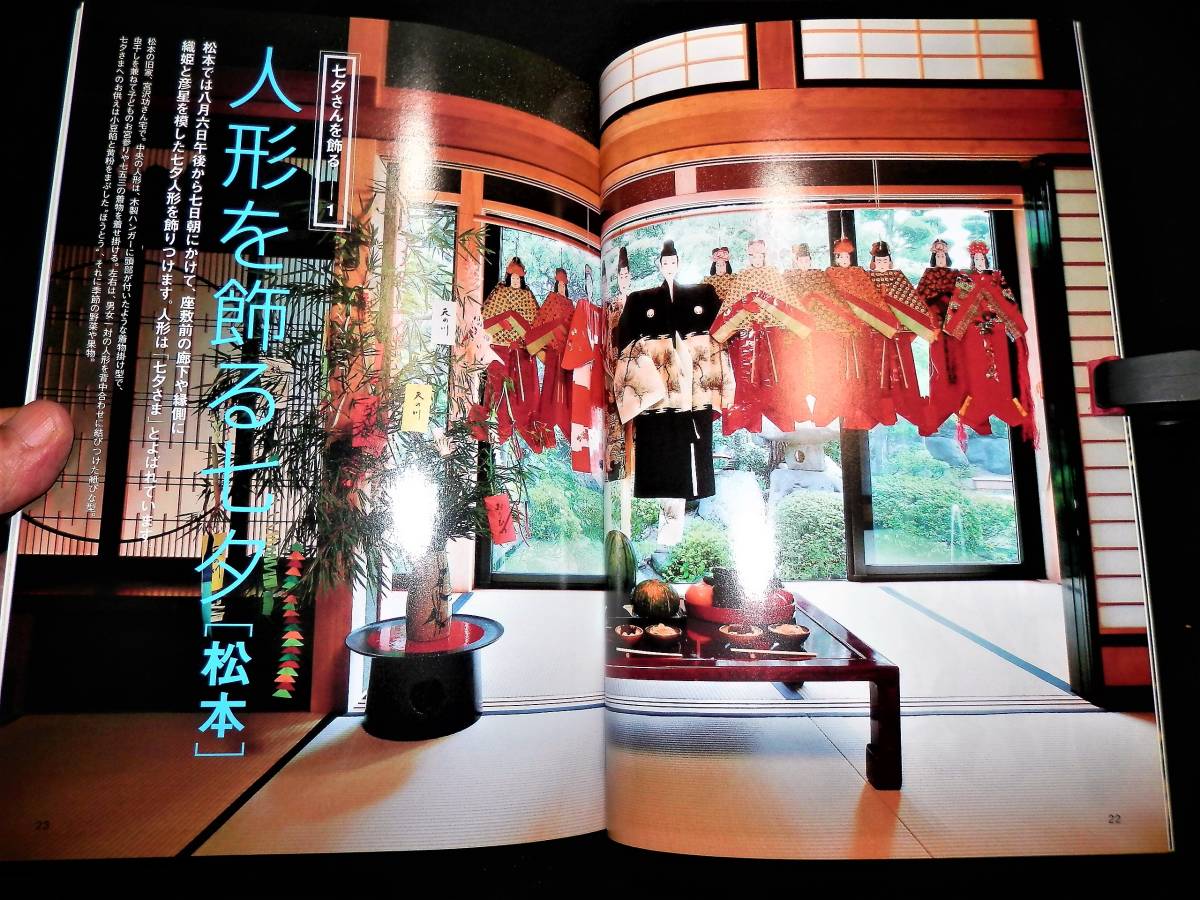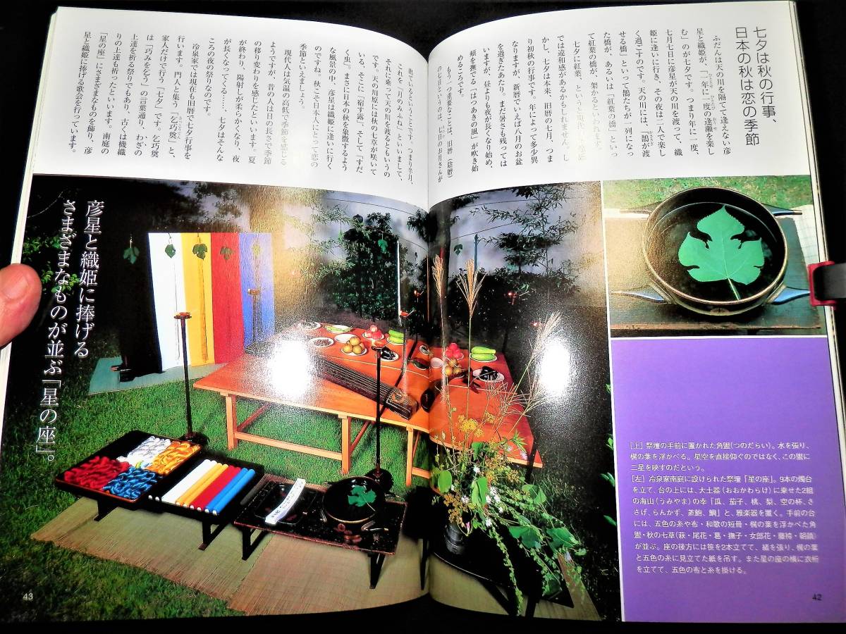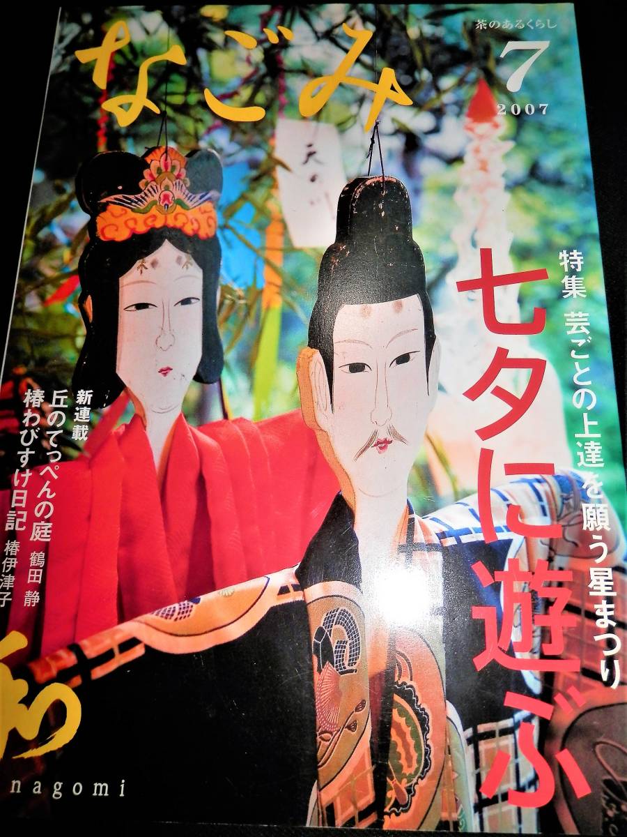 ■■『茶道誌』・・・■■ ●●『なごみ』・・・●● **”(2007年7月・通巻第331号)”** ■■『特集』・・・■■ ー”芸ごとの上達を願う星まつり”ー ●●「七夕に遊ぶ」・・・●● **”イラストー武藤良子”** **”(約・38頁)”** ★天の川に隔てられた牽星と織女が年に一度出逢うー ーー。 この中国の伝統は、技芸上達を二星に願う習慣ととも に奈良時代の宮中に伝わりました。 江戸時代になると七夕は民間にも広まり、お盆の行事 とも結びついて、さまざまな慣わしが生まれました。 七夕本来の意味を探ってゆくと広がる深くゆたかな世 界、現代に息づく七夕の伝統的な楽しみ方のいくつか を紹介します。 ◆姫路・(東山地区)・の・「七夕さんの着物」。 ◆山梨の・「七夕さま」。 ■発行日=平成19年7月1日。 ■発行所=株式会社・淡交社。 ■サイズ=18×25.5cm。 ■定価=840円。 ■状態。 ●表紙に・多少の・キズ・ヤケが有ります。 ●本誌内に・多少の・ヤケが見えますが ●大きなダメージは・無く ●年代的には・良い状態に思います。 ◆◆注意・・・◆◆ ★発行日より・経年を経て下ります。 コンディションに係らず・古書で有る事を 充分に御理解の上・御入札下さい。 ★神経質な方は入札をご辞退下さい・・!! ●全・128頁・・・!! ●特集の・「七夕に遊ぶ」・は・約38頁!! ●蒐集・資料などの・参考に・・・!! ●探されていた方は・この機会に・・・!! ●以下・詳細をご覧ください・・・!! ◆掲載案内は・抜粋し掲載して下ります。 ◆掲載内容は・Q&Aより・問い合わせ下さい。 ◆数字記載は目視です・間違いは御容赦下さい。 ◆掲載を抜粋紹介し・「タイトル」・と致します。 ■■■■■■■■■■■■■■■■■■■■■■■■■■■ ★★★★★★★★★★★★★★★★★★★★★★★★★★★ ■■『特集』・・・■■ ー”一息つける待合のもてなし”ー ■■「香煎の楽しみ」・・・■■ **”道具組・談ー秋山宗和・(茶道家)”** **”(約・38頁)”** ★天の川に隔てられた牽星と織女が年に一度出逢うー ーー。 この中国の伝統は、技芸上達を二星に願う習慣ととも に奈良時代の宮中に伝わりました。 江戸時代になると七夕は民間にも広まり、お盆の行事 とも結びついて、さまざまな慣わしが生まれました。 七夕本来の意味を探ってゆくと広がる深くゆたかな世 界、現代に息づく七夕の伝統的な楽しみ方のいくつか を紹介します。 ◆姫路・(東山地区)・の・「七夕さんの着物」。 ◆山梨の・「七夕さま」。 ー”七夕さんを飾るーー1”ー ●●「人形を飾る七夕」-松本・・・●● **”(松本の旧家、宮沢功さん宅で)”** ★松本では8月6日の午後から7日朝にかけて、座敷前 の廊下や縁側に織姫を模した七夕人形を飾り付けます。 人形は・「七夕さま」・とよばれています。 ●七夕人形は初子の誕生を祝う贈物でしたーー宮沢家 の七夕。 ◆子どもが健やかに育つように、七夕さまに着物を お貸せします。 ●●「松本は七夕人形の宝庫です」・・・●● **”松市立博物館の七夕人形のコレクション ・(重要有形民俗文化財)・より”** ◆着物掛け型。 ・明治~昭和。 ◆アシナガ。 ・江戸~大正。 ◆流しびな型。 ・昭和。 ◆紙びな型。 ・江戸~明治。 ◆ひとがた型。 ・江戸末期~明治初め。 ー”七夕さんを飾るーー2”ー ●●「紙衣を飾る」-京都・・・●● ●少女たちが裁縫上達を願って作った紙衣・「七夕さ ん」。 ◆京都の紙衣は振袖や小袖がほとんどだが、裃や羽 織、袴もあり、なかにはエリの部分を糸で結んで 対にした珍しい紙衣・(上写真)・も見られる。 ー”七夕さんを飾るーー3”ー ●●「七夕さんを作ってみよう」・・・●● ★紙とはさみだけで簡単にできる七夕人形の作り方を紹 介します。 思い思いの飾り方で七夕に遊んでみましょう。 ●「山梨の七夕人形」・・・● ◆七夕さま・(織姫と彦星)・の作り方。 ◆男と女の作り方。 ●「姫路・生野の七夕人形」・・・● ◆生野の七夕さんの作り方。 ー”七夕に涼を感じる”ー ●●「星逢・織姫の茶会」・・・●● **”道具組・談=入江宗敬”** ◆床 ー千代女筆・七夕。 「ほしあいやこころして行雲の脚・ちよ」。 ◆花 ー鉄仙・川原撫子。 ◆花入 ー唐銅釣舟・多賀良舟とあり・・・蔵六造。 ◆香合 ー笛・・・・・・・・・・・・・・葵春造。 ◆風炉先ー山水・鵬雲斎大宗匠在判。 ◆釜 ー仙叟好・四方渦・・・・・・・・寒雉造。 ◆風炉 ー雲龍・・・・・・・・・・・・・宗元造。 ◆水指 ー末広籠受筒。 ◆薄器 ー朱糸巻棗・鵬雲斎大宗匠在判。 ◆茶杓 ー後藤瑞巌老師作共筒・銘・「織姫」。 ◆茶碗 ー虫明・笹・鵬雲斎大宗匠箱。 ◆替 ー白碗・銘・「貴妃」。 ◆蓋置ー竹・鵬雲斎大宗匠在判。 ◆建水 ー唐銅。 ◆菓子ー珠玉織姫・・・・・・・・松屋藤兵衛製。 ◆菓子器ー片木目・四方盆。 ー”宮人が遊んだ七夕”ー ●●「貴族たちの乞巧奠」・・・●● **”文・冷泉為人・(冷泉家第二十五代当主)”** ー”和歌の家が伝える”ー ●「冷泉家の乞