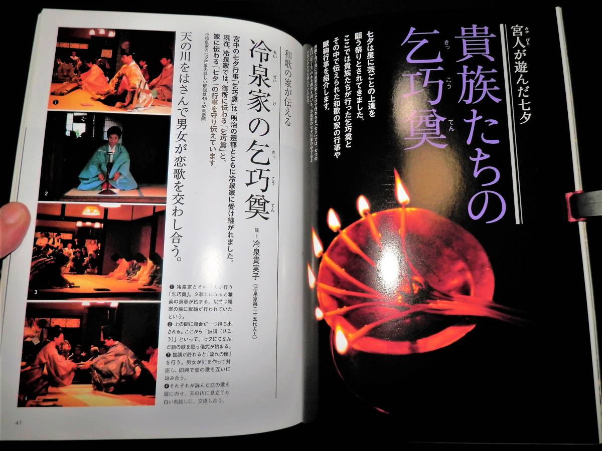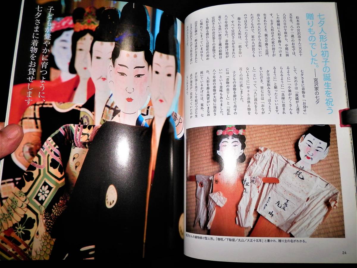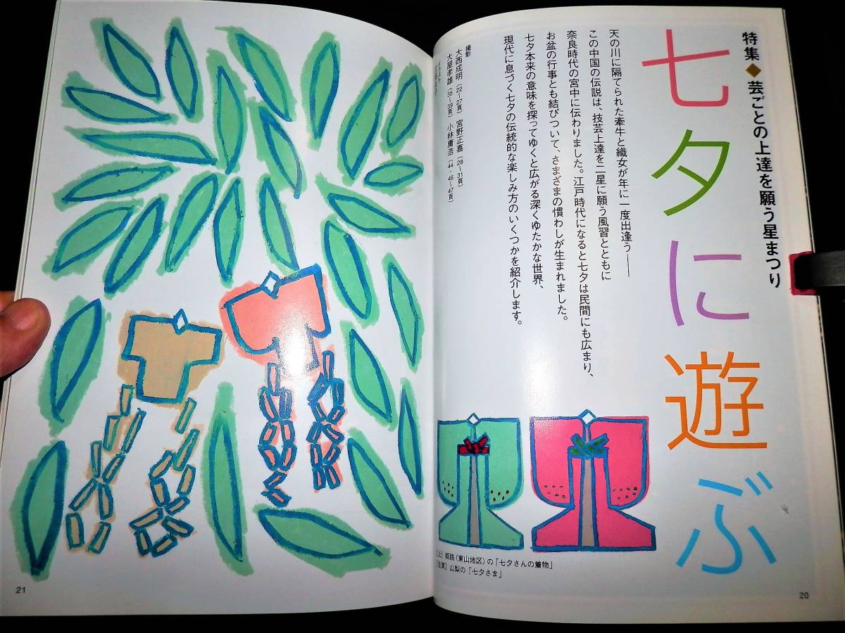 ■■『茶道誌』・・・■■ ●●『なごみ』・・・●● **”(2007年7月・通巻第331号)”** ■■『特集』・・・■■ ー”芸ごとの上達を願う星まつり”ー ●●「七夕に遊ぶ」・・・●● **”イラストー武藤良子”** **”(約・38頁)”** ★天の川に隔てられた牽星と織女が年に一度出逢うー ーー。 この中国の伝統は、技芸上達を二星に願う習慣ととも に奈良時代の宮中に伝わりました。 江戸時代になると七夕は民間にも広まり、お盆の行事 とも結びついて、さまざまな慣わしが生まれました。 七夕本来の意味を探ってゆくと広がる深くゆたかな世 界、現代に息づく七夕の伝統的な楽しみ方のいくつか を紹介します。 ◆姫路・(東山地区)・の・「七夕さんの着物」。 ◆山梨の・「七夕さま」。 ■発行日=平成19年7月1日。 ■発行所=株式会社・淡交社。 ■サイズ=18×25.5cm。 ■定価=840円。 ■状態。 ●表紙に・多少の・キズ・ヤケが有ります。 ●本誌内に・多少の・ヤケが見えますが ●大きなダメージは・無く ●年代的には・良い状態に思います。 ◆◆注意・・・◆◆ ★発行日より・経年を経て下ります。 コンディションに係らず・古書で有る事を 充分に御理解の上・御入札下さい。 ★神経質な方は入札をご辞退下さい・・!! ●全・128頁・・・!! ●特集の・「七夕に遊ぶ」・は・約38頁!! ●蒐集・資料などの・参考に・・・!! ●探されていた方は・この機会に・・・!! ●以下・詳細をご覧ください・・・!! ◆掲載案内は・抜粋し掲載して下ります。 ◆掲載内容は・Q&Aより・問い合わせ下さい。 ◆数字記載は目視です・間違いは御容赦下さい。 ◆掲載を抜粋紹介し・「タイトル」・と致します。 ■■■■■■■■■■■■■■■■■■■■■■■■■■■ ★★★★★★★★★★★★★★★★★★★★★★★★★★★ ■■『特集』・・・■■ ー”一息つける待合のもてなし”ー ■■「香煎の楽しみ」・・・■■ **”道具組・談ー秋山宗和・(茶道家)”** **”(約・38頁)”** ★天の川に隔てられた牽星と織女が年に一度出逢うー ーー。 この中国の伝統は、技芸上達を二星に願う習慣ととも に奈良時代の宮中に伝わりました。 江戸時代になると七夕は民間にも広まり、お盆の行事 とも結びついて、さまざまな慣わしが生まれました。 七夕本来の意味を探ってゆくと広がる深くゆたかな世 界、現代に息づく七夕の伝統的な楽しみ方のいくつか を紹介します。 ◆姫路・(東山地区)・の・「七夕さんの着物」。 ◆山梨の・「七夕さま」。 ー”七夕さんを飾るーー1”ー ●●「人形を飾る七夕」-松本・・・●● **”(松本の旧家、宮沢功さん宅で)”** ★松本では8月6日の午後から7日朝にかけて、座敷前 の廊下や縁側に織姫を模した七夕人形を飾り付けます。 人形は・「七夕さま」・とよばれています。 ●七夕人形は初子の誕生を祝う贈物でしたーー宮沢家 の七夕。 ◆子どもが健やかに育つように、七夕さまに着物を お貸せします。 ●●「松本は七夕人形の宝庫です」・・・●● **”松市立博物館の七夕人形のコレクション ・(重要有形民俗文化財)・より”** ◆着物掛け型。 ・明治~昭和。 ◆アシナガ。 ・江戸~大正。 ◆流しびな型。 ・昭和。 ◆紙びな型。 ・江戸~明治。 ◆ひとがた型。 ・江戸末期~明治初め。 ー”七夕さんを飾るーー2”ー ●●「紙衣を飾る」-京都・・・●● ●少女たちが裁縫上達を願って作った紙衣・「七夕さ ん」。 ◆京都の紙衣は振袖や小袖がほとんどだが、裃や羽 織、袴もあり、なかにはエリの部分を糸で結んで 対にした珍しい紙衣・(上写真)・も見られる。 ー”七夕さんを飾るーー3”ー ●●「七夕さんを作ってみよう」・・・●● ★紙とはさみだけで簡単にできる七夕人形の作り方を紹 介します。 思い思いの飾り方で七夕に遊んでみましょう。 ●「山梨の七夕人形」・・・● ◆七夕さま・(織姫と彦星)・の作り方。 ◆男と女の作り方。 ●「姫路・生野の七夕人形」・・・● ◆生野の七夕さんの作り方。 ー”七夕に涼を感じる”ー ●●「星逢・織姫の茶会」・・・●● **”道具組・談=入江宗敬”** ◆床 ー千代女筆・七夕。 「ほしあいやこころして行雲の脚・ちよ」。 ◆花 ー鉄仙・川原撫子。 ◆花入 ー唐銅釣舟・多賀良舟とあり・・・蔵六造。 ◆香合 ー笛・・・・・・・・・・・・・・葵春造。 ◆風炉先ー山水・鵬雲斎大宗匠在判。 ◆釜 ー仙叟好・四方渦・・・・・・・・寒雉造。 ◆風炉 ー雲龍・・・・・・・・・・・・・宗元造。 ◆水指 ー末広籠受筒。 ◆薄器 ー朱糸巻棗・鵬雲斎大宗匠在判。 ◆茶杓 ー後藤瑞巌老師作共筒・銘・「織姫」。 ◆茶碗 ー虫明・笹・鵬雲斎大宗匠箱。 ◆替 ー白碗・銘・「貴妃」。 ◆蓋置ー竹・鵬雲斎大宗匠在判。 ◆建水 ー唐銅。 ◆菓子ー珠玉織姫・・・・・・・・松屋藤兵衛製。 ◆菓子器ー片木目・四方盆。 ー”宮人が遊んだ七夕”ー ●●「貴族たちの乞巧奠」・・・●● **”文・冷泉為人・(冷泉家第二十五代当主)”** ー”和歌の家が伝える”ー ●「冷泉家の乞