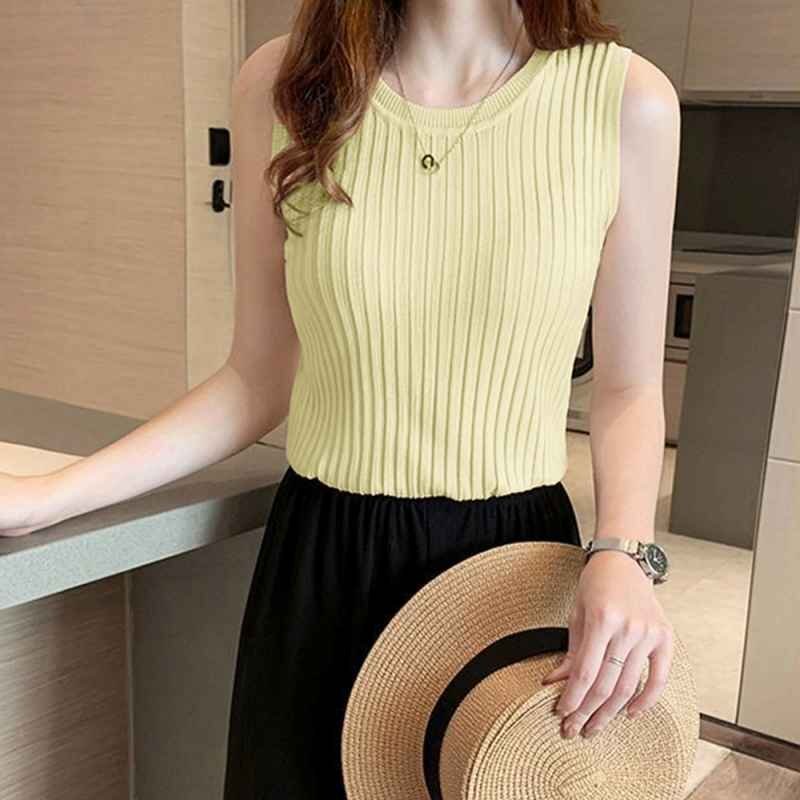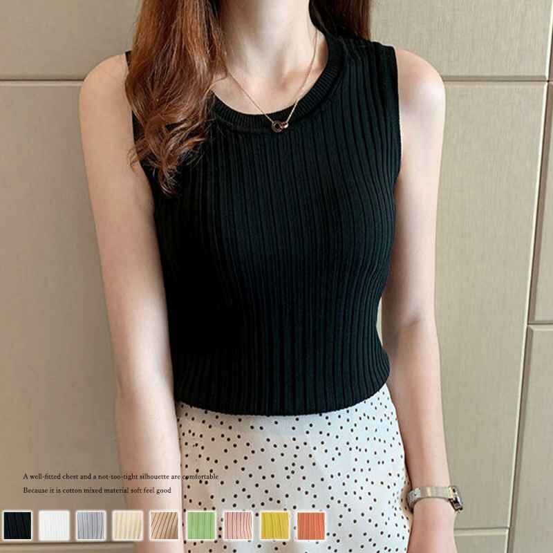 春夏秋冬オールシーズンで着られる可愛いノースリーブニットタンクトップ