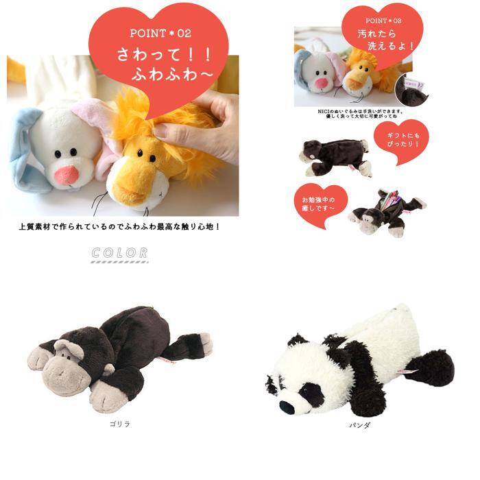 商品説明 | ・・ドイツで誕生したぬいぐるみメーカー、NICI(ニキ)の遊び心に満ちたポップなぬいぐるみポーチ! ・様々な動物をかたどった、ぬいぐるみのように可愛らしいフィギュアポーチ。気持ちの良い肌触りに癒される♪ ・動物たちの背中のファスナー内側が収納スペースになったユニークなつくり。小物がたっぷり入るので、ペンケースやコスメポーチにぴったり。 ・動物やぬいぐるみが好きな方、お子さまから大人まで、様々な方にお使いいただける優しいデザインが魅力。 ・キュートなアニマルたちを種類豊富にラインナップ。お気に入りのキャラクターを身近に置いて毎日のモチベーションをアップに♪ |