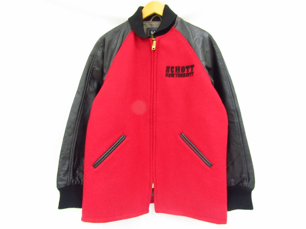 Schott ショット カーコート ファラオジャケット スタジャン ウール レザー ロゴ アウター レッド 赤 Lサイズ 中古品★101139 | |||||||||