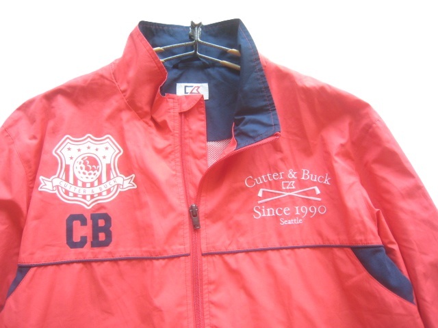 美品!!カッター&バック CUTTER&BUCK*ロゴ刺繍・プリント メッシュ裏地 立ち襟ナイロンZIPジャケット M ゴルフ GOLF デサント