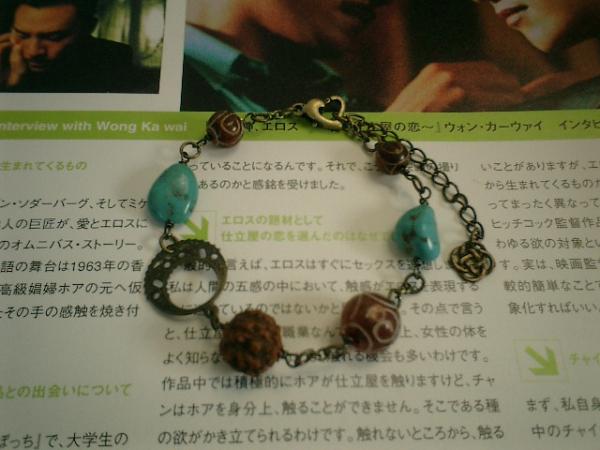 シックなターコイズと菩提樹ビーズと個性的な模様が素敵なストーンとオリエンタルなチャームでブレスレットを作りました♪アジアンチックな雰囲気で可愛いです♪ターコイズは8ミリから12ミリ位で菩提樹ビーズは13ミリ位です♪♪アンティークな雰囲気の唐草模様のストーンとチャームを合わせました♪落ち着いたお色でまとめてシックな存在感があります♪。シンプルで飽きのこないいつまでも着けられるデザインを考えて作りました!長さは17センチ+アジャスター4センチで最長21センチ位です♪お揃いのネックレスも出品しています♪ハンドメイドをご理解頂いてノークレーム、ノーリターンでお願いします