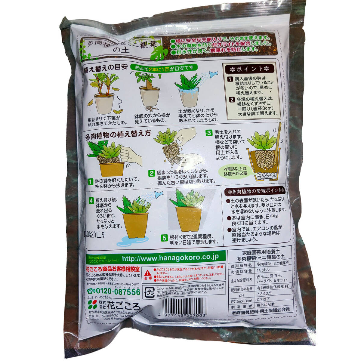商品名 | 花ごころ 多肉植物&ミニ観葉の土 1L 園芸用土 植え替え 鹿沼 赤玉 排水性 根腐れ防止 パーライト ゼオライト 肥料入り |