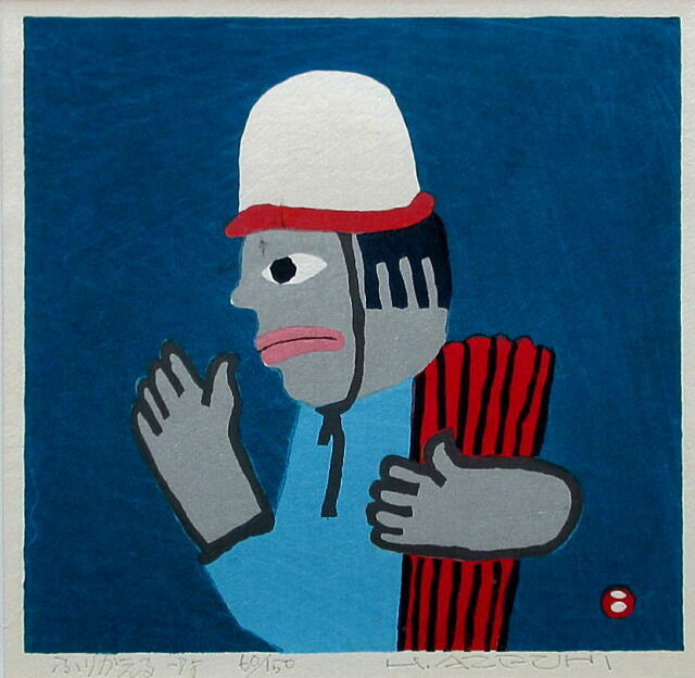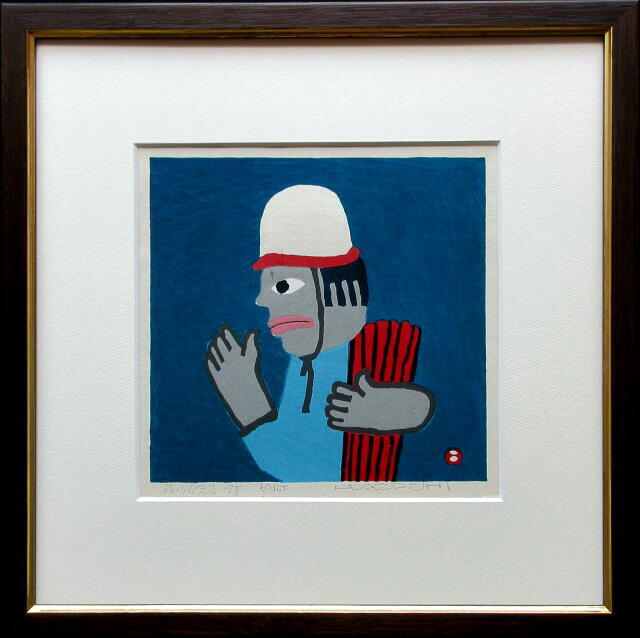 畦地梅太郎    ふりかえる  木版画  真作保証  エディション  作家サインあります