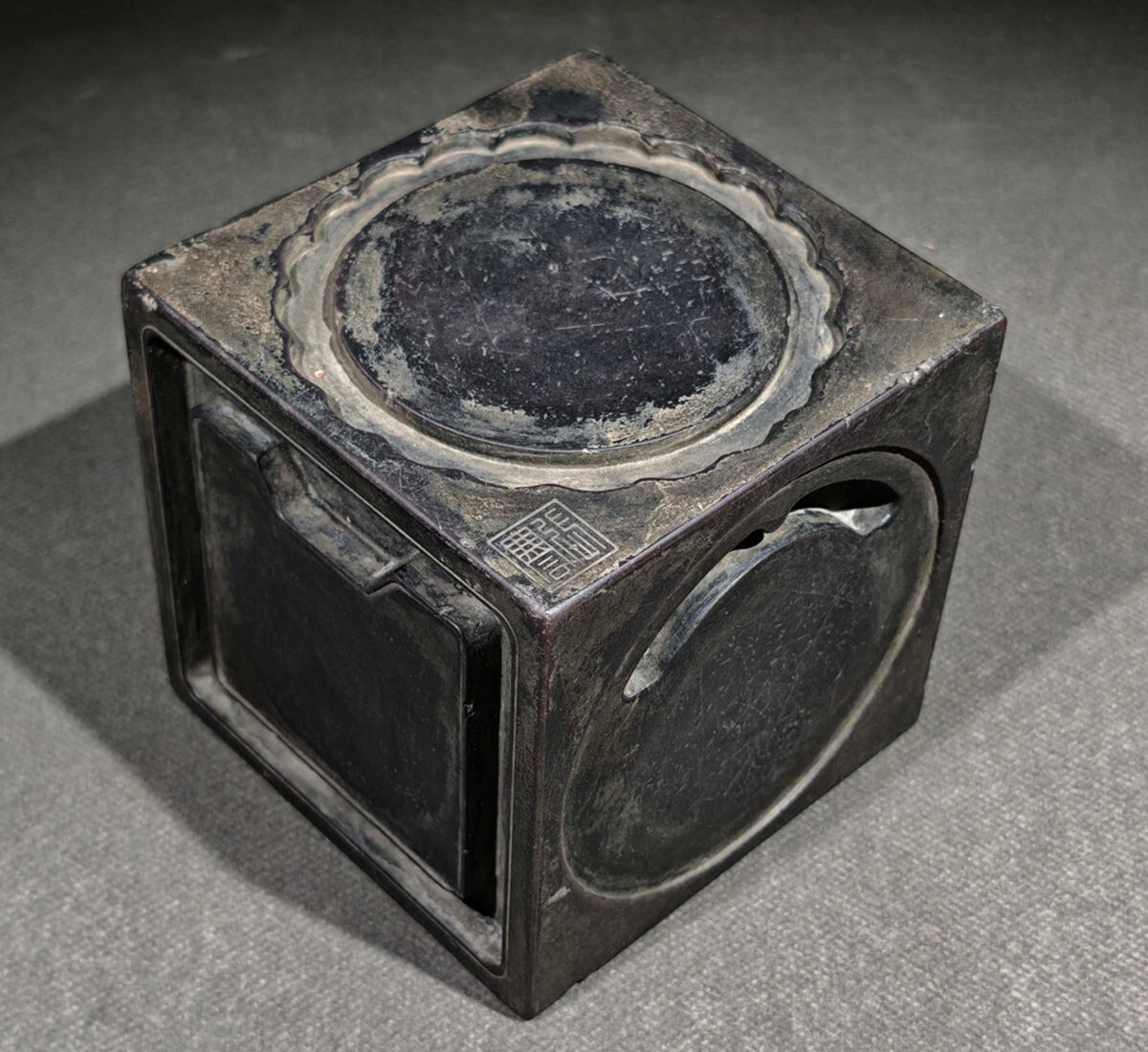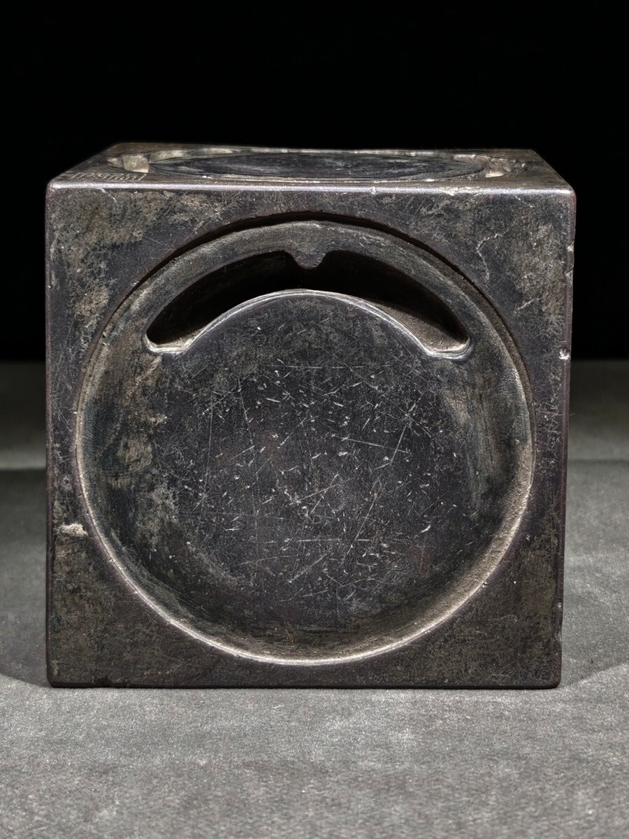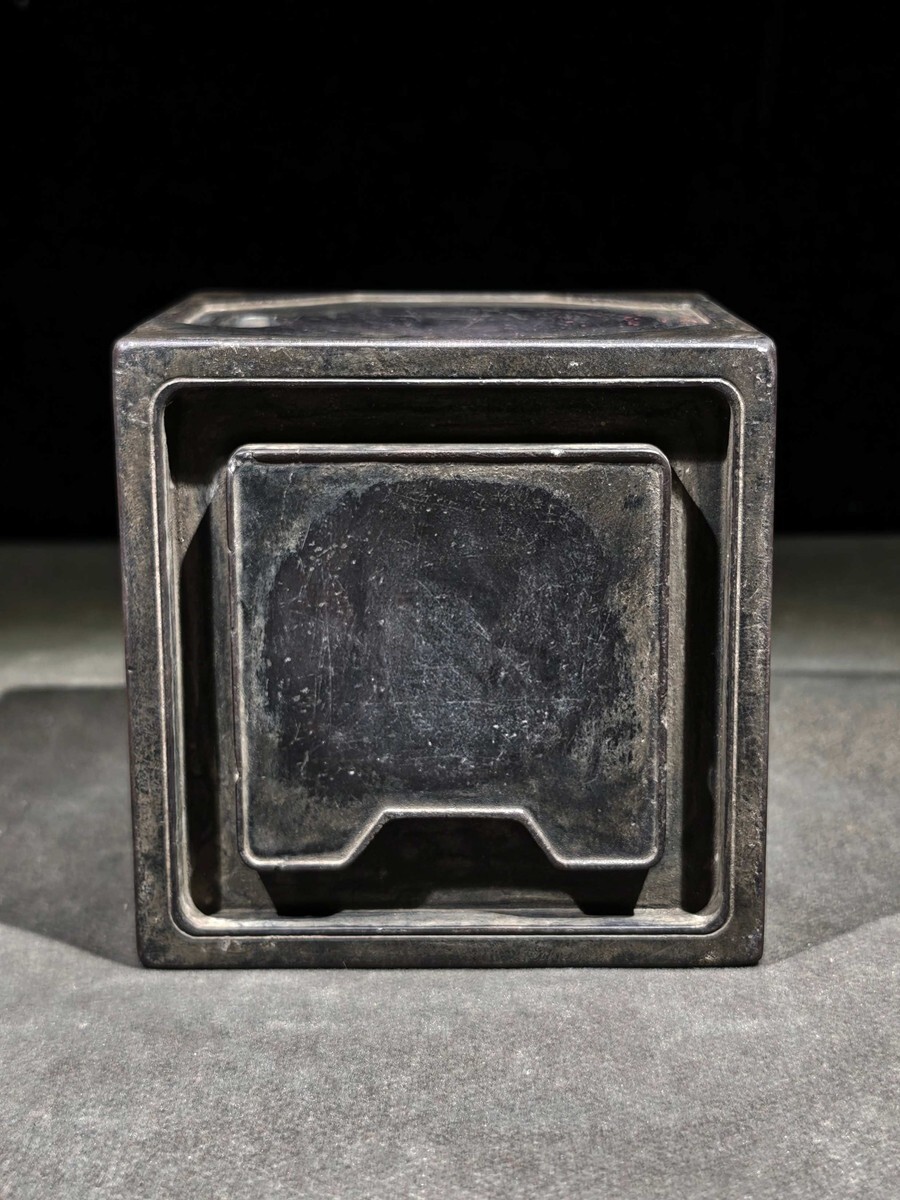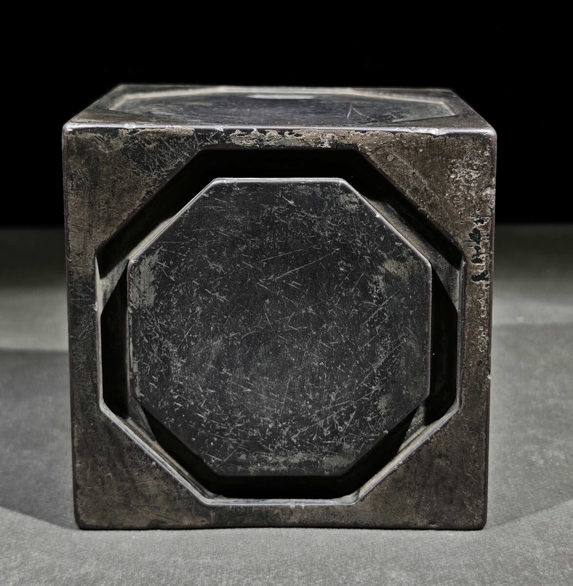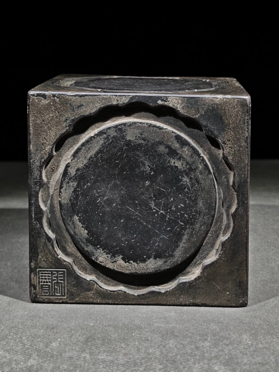 【瓏】老坑端石彫 六面正方形文房端渓硯 張謇銘 清時代 手彫り 文房四寶 書道具 中国古硯 古美術 蔵出