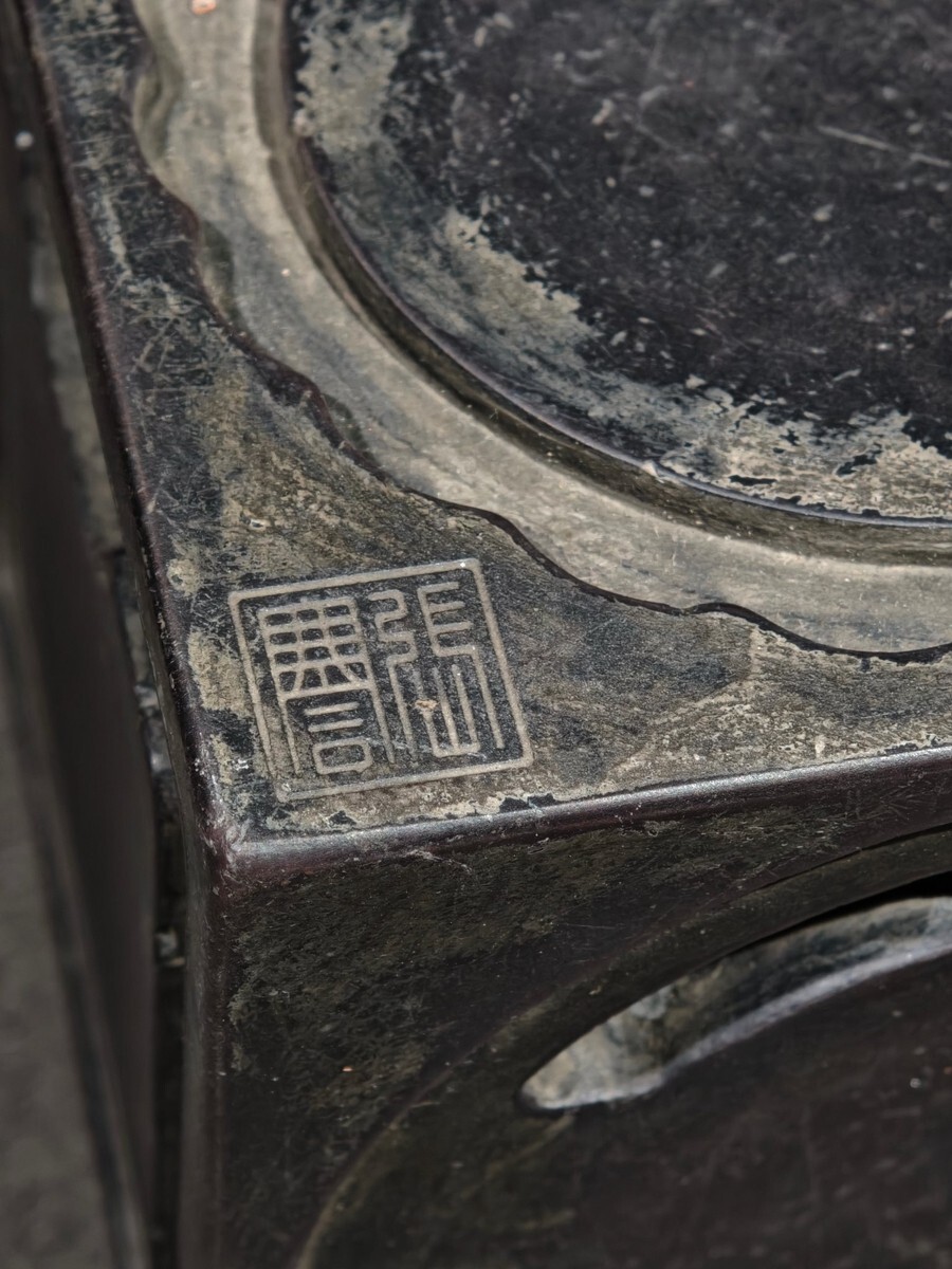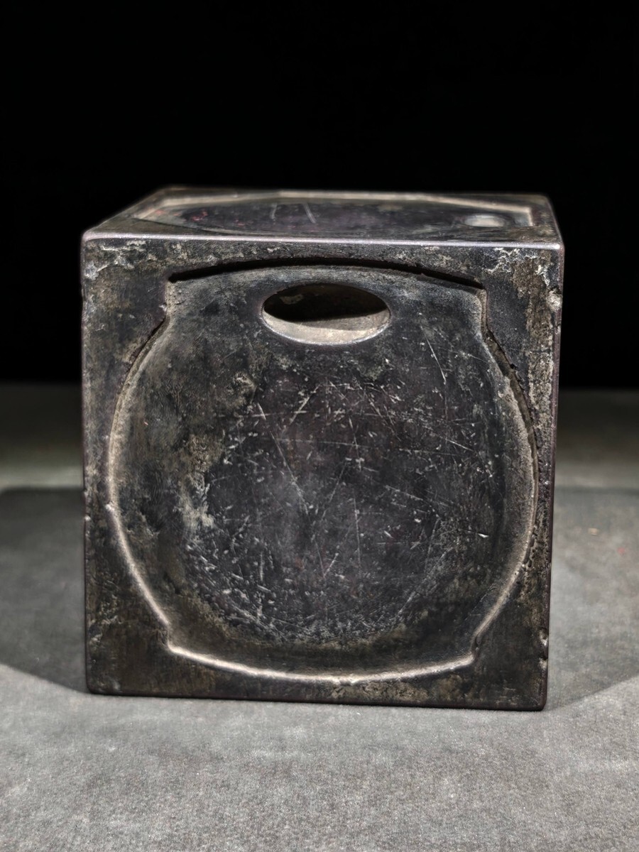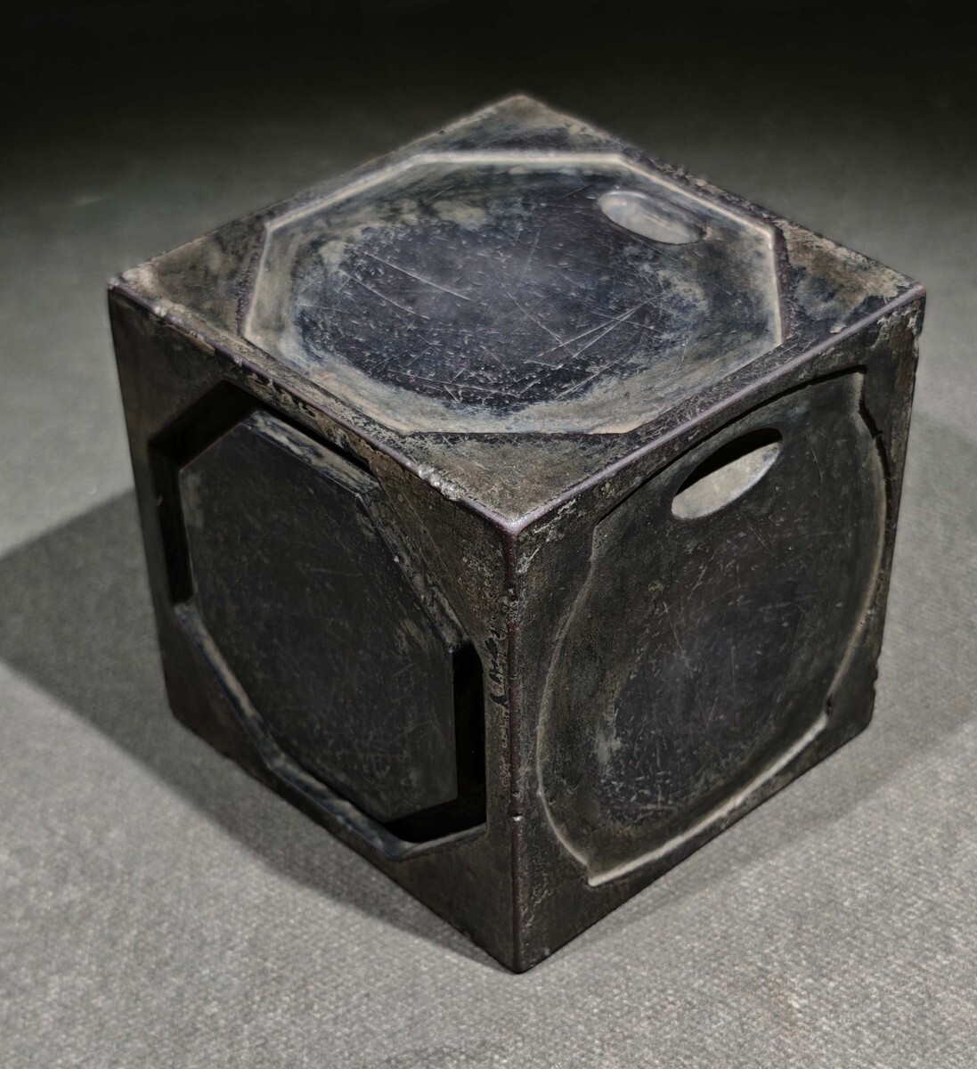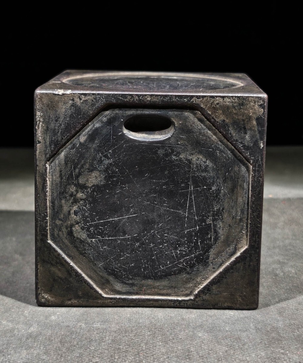 【瓏】老坑端石彫 六面正方形文房端渓硯 張謇銘 清時代 手彫り 文房四寶 書道具 中国古硯 古美術 蔵出