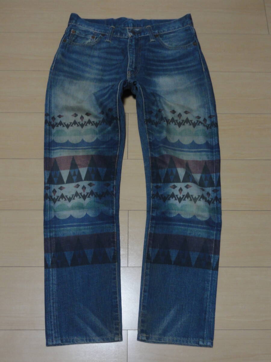 高級人気ブランド LEVI'S 508(リーバイス) のダメージ加工デニム地・ネイティブインディアン系腿プリント入り高級デザインジーンズタイプのお洒落でかっこいいレアモデルです。