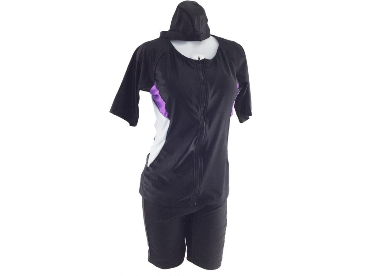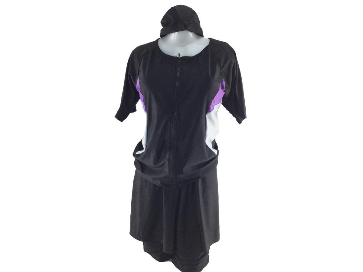 フィットネスに最適な、トップス・キュロット・パンツ・スイムキャップの4点セット水着。