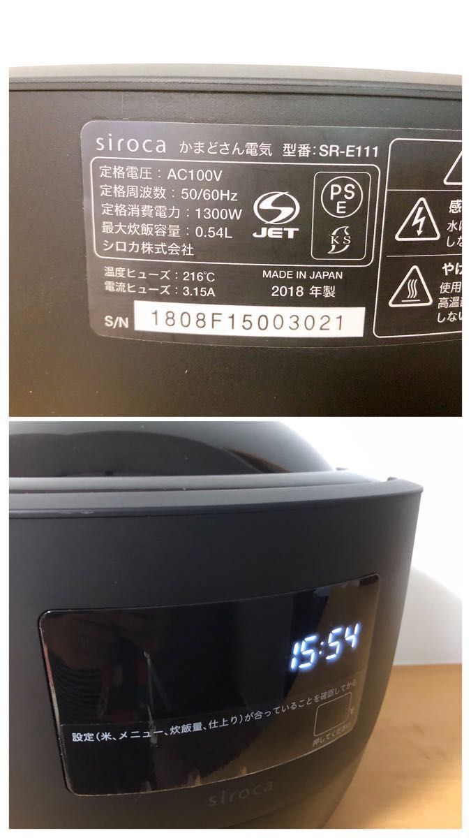 siroca シロカ 長谷園 かまどさん電気 全自動炊飯土鍋 SR-E111 3合炊き 伊賀焼