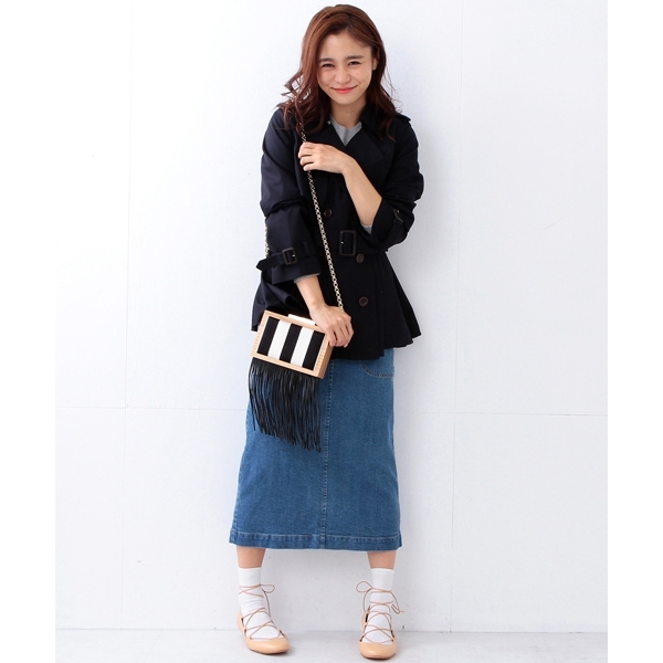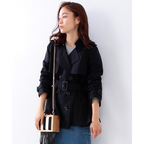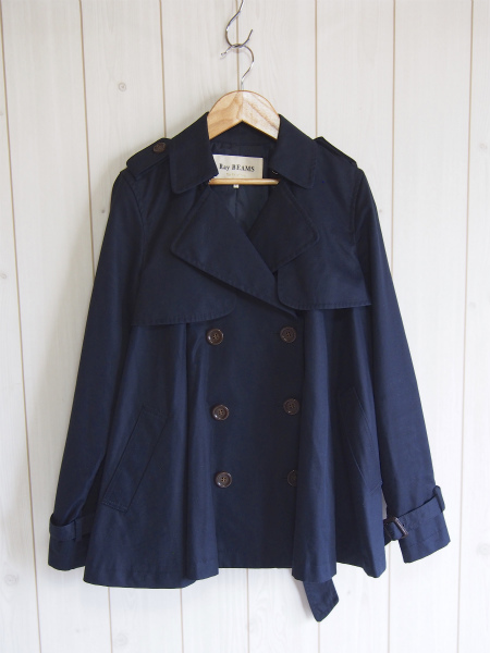 Ray BEAMS Aライン ショートトレンチコート★レイビームス ネイビー